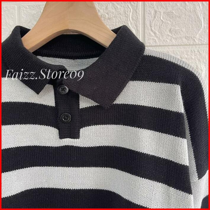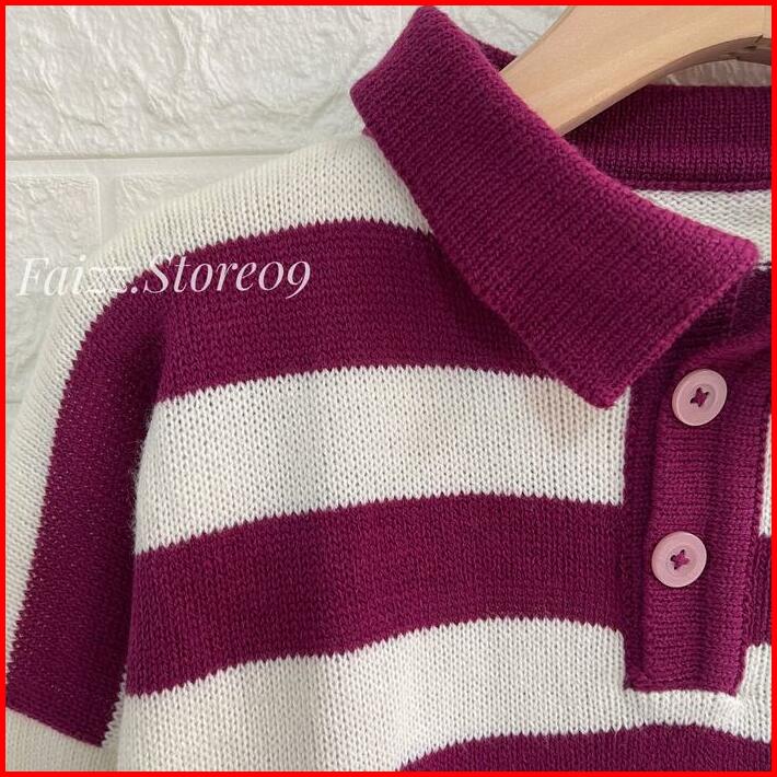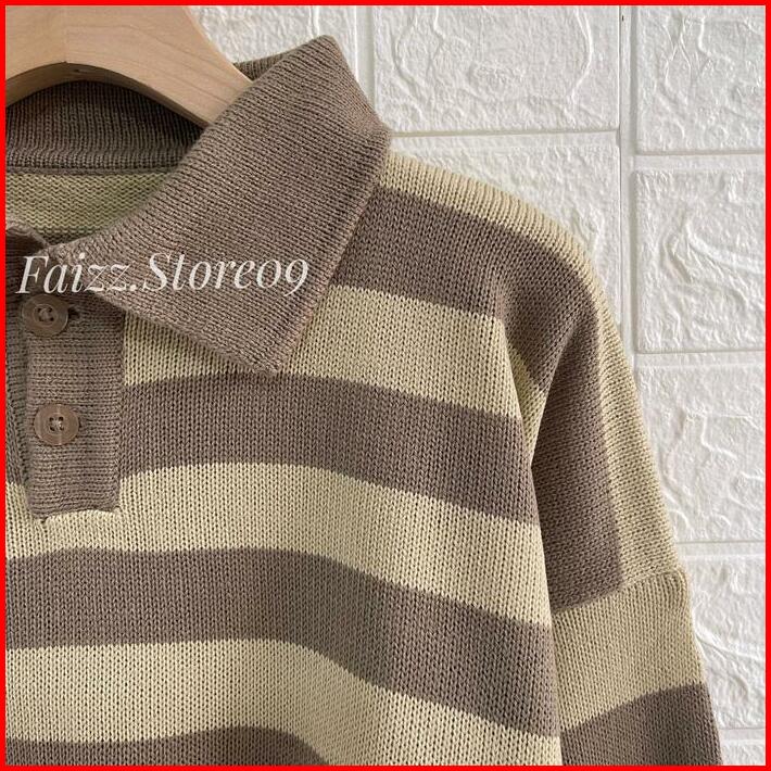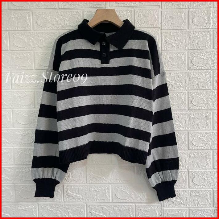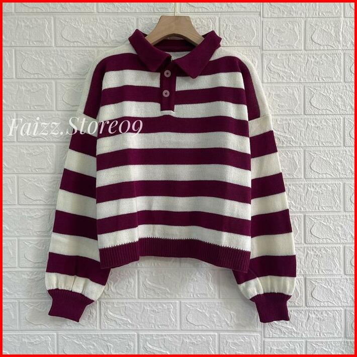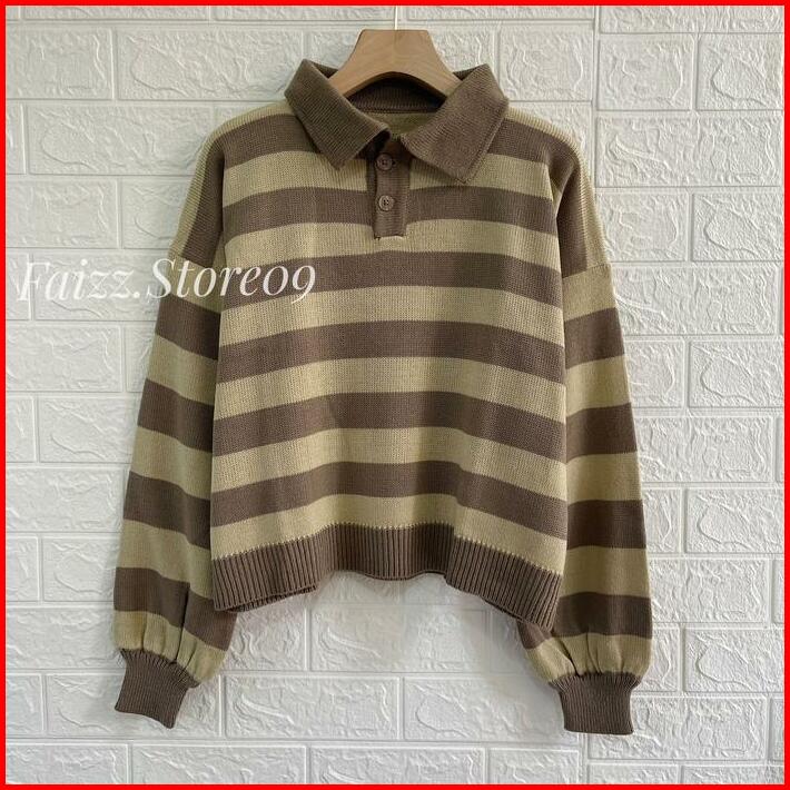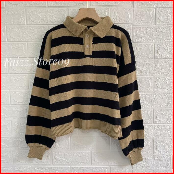 Polo Sweater Rika Blaster Blouse Strippe Lengan Panjang Baju Wanita Atasan Kerah
