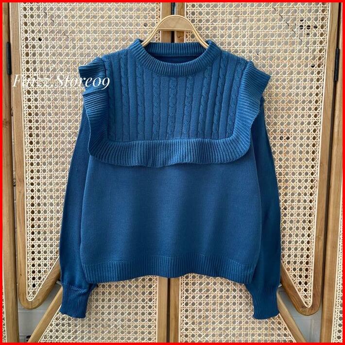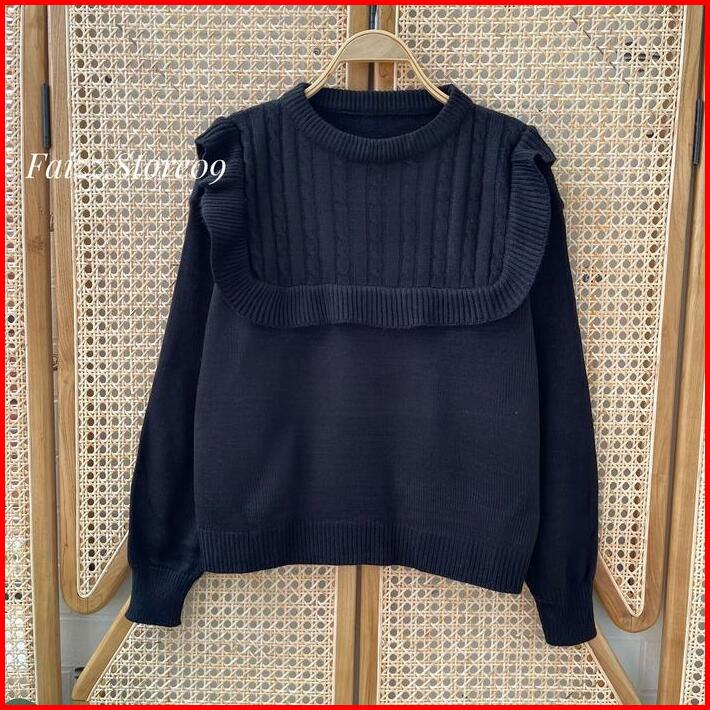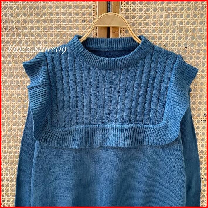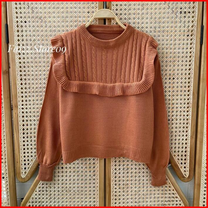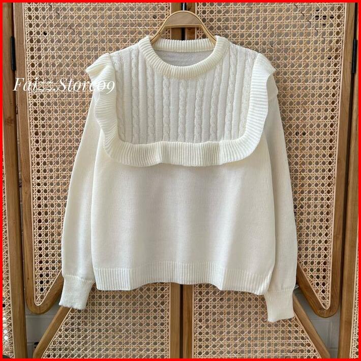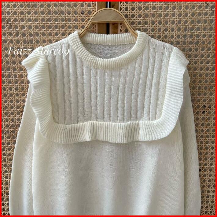 Dakriani Sweater Atasan Rajut Wanita Motif Ruffel Cable Lengan Panjang Knitwear Top Baju
