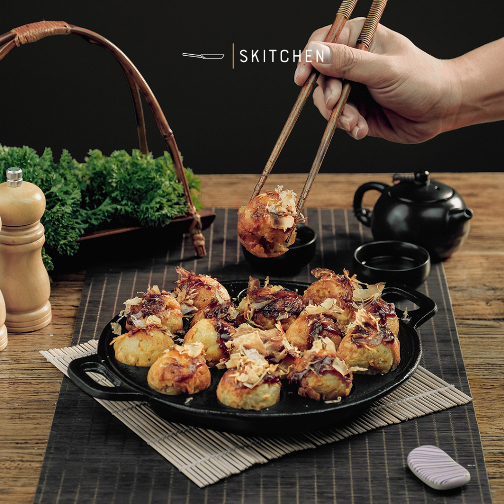 Tokyo Takoyaki Pan Cetakan 15 lubang yang bisa dipakai untuk membuat takoyaki, poffertjes, egg bites, kue cubit, telu