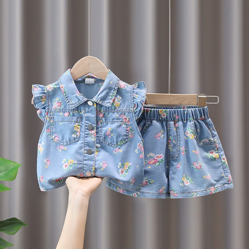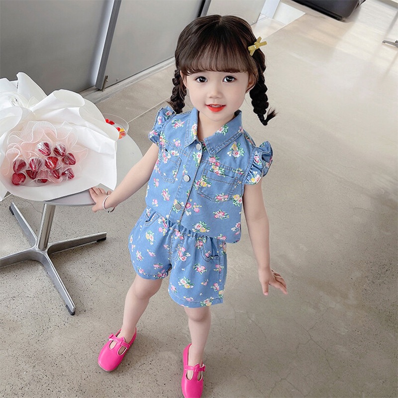 Setelan Anak Perempuan 1-7 Tahun Set baju Lengan Flutter Celana Pendek - BAP-33