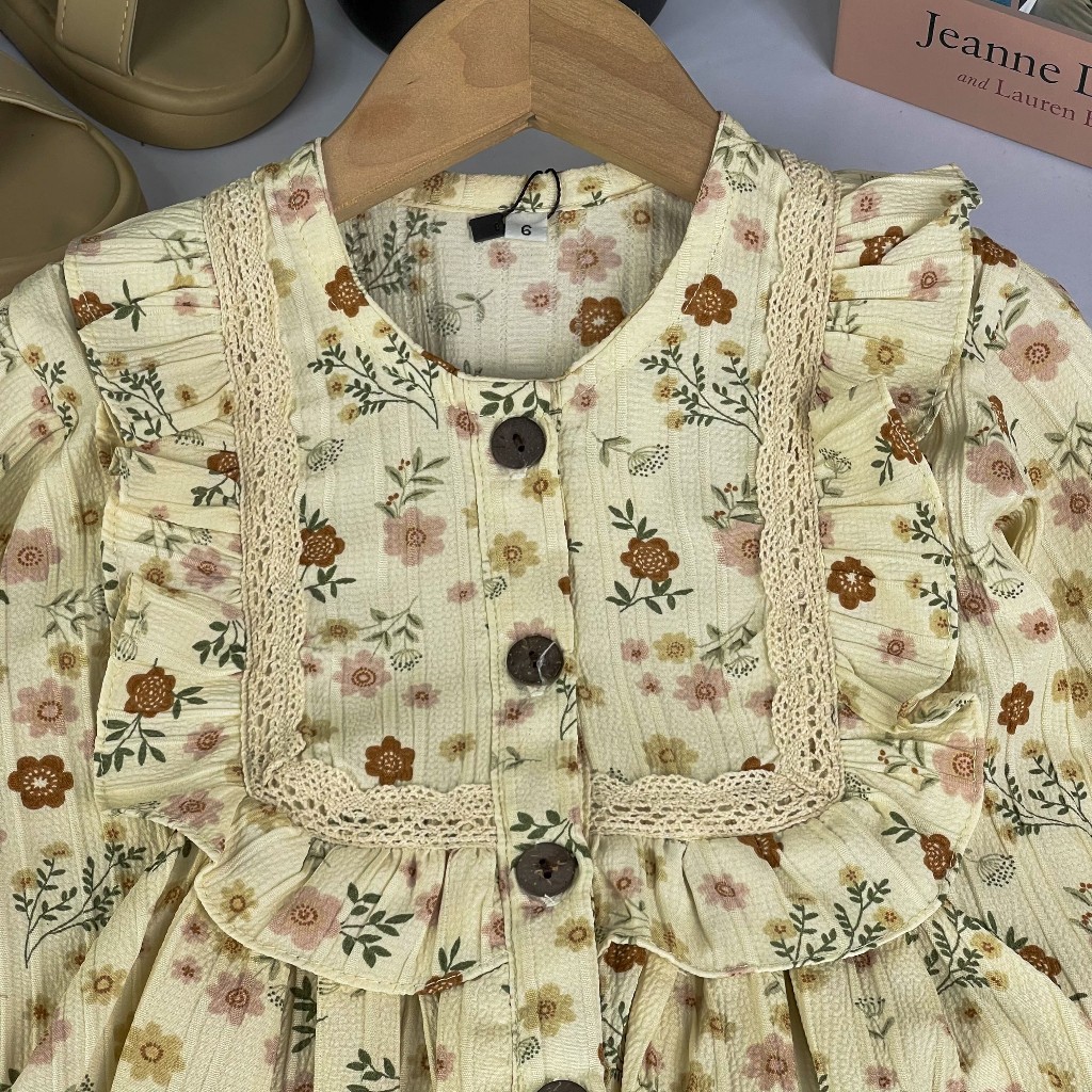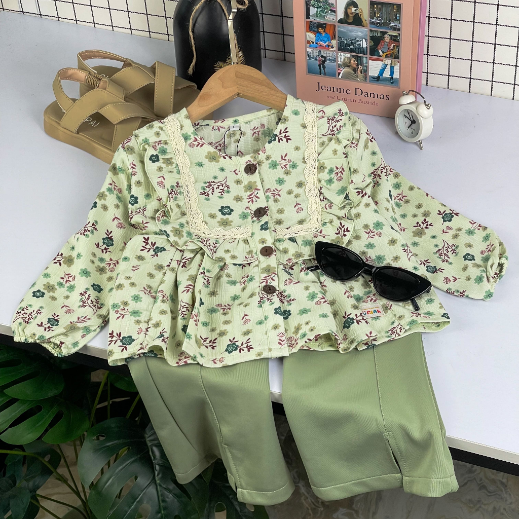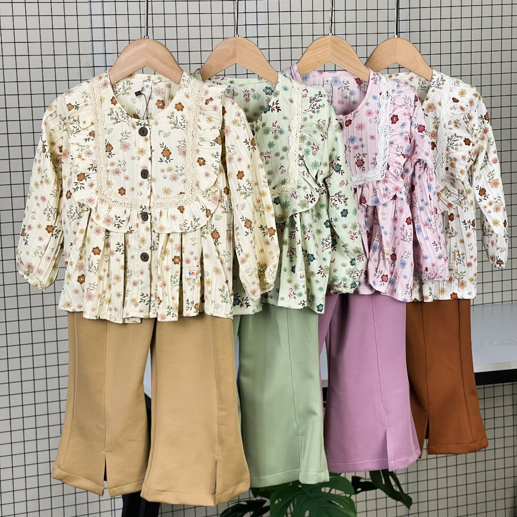 AURELIA Set Baju Celana Anak Cewek Lengan Panjang Motif Bunga Crinkle Premium -BAP-37