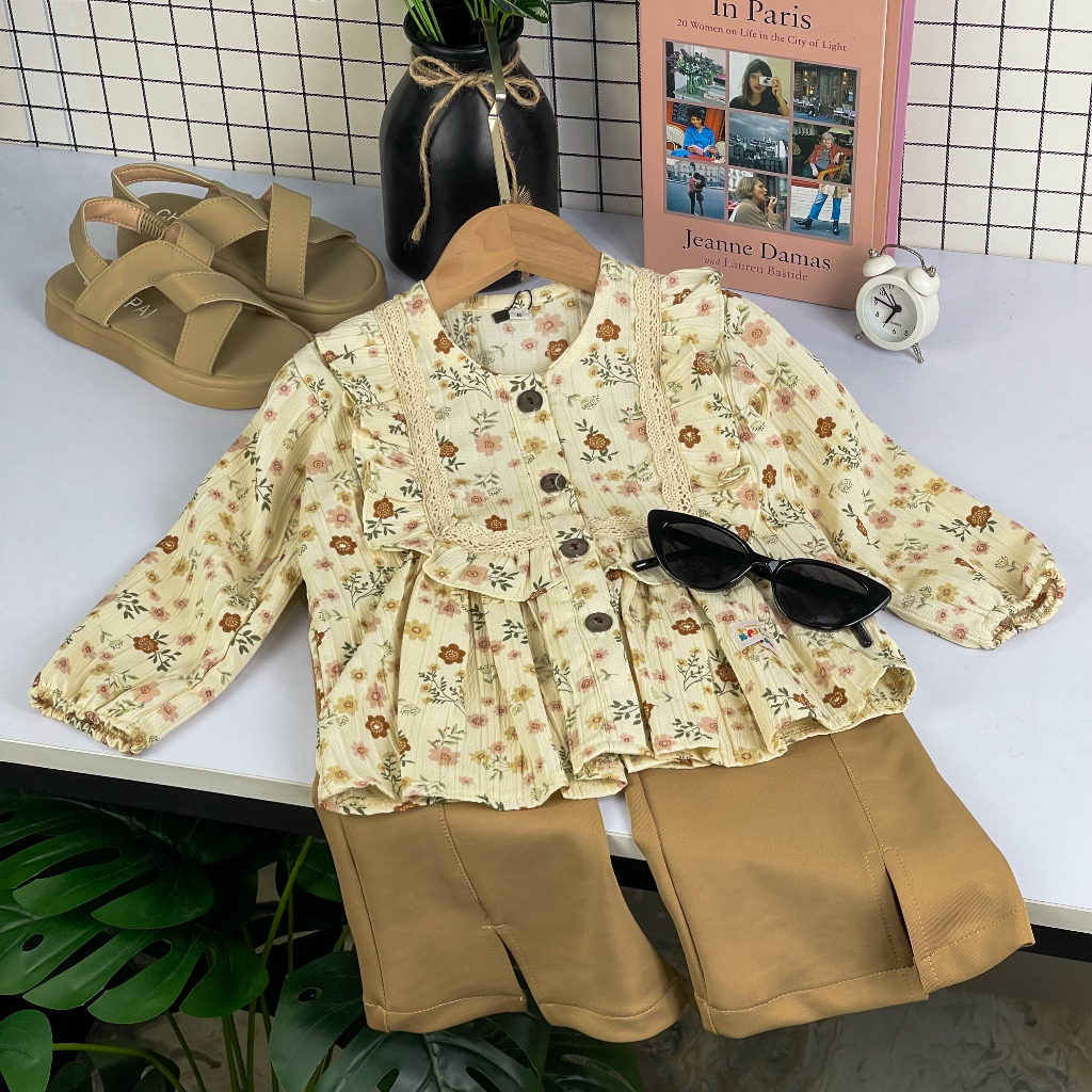 AURELIA Coksu Set Baju Celana Anak Cewek Lengan Panjang Motif Bunga Crinkle Premium -BAP-37