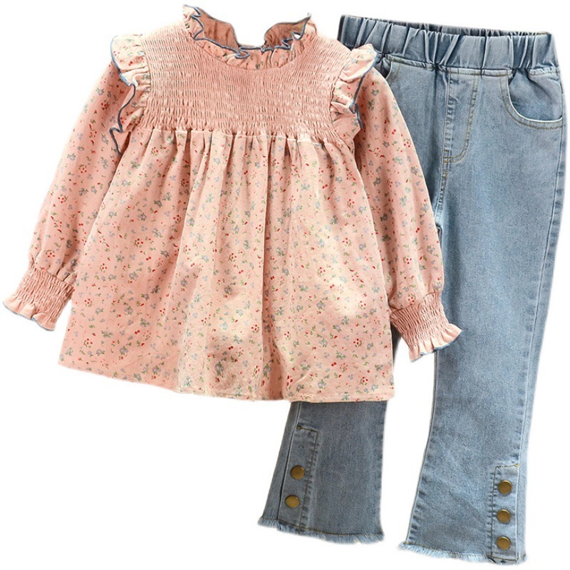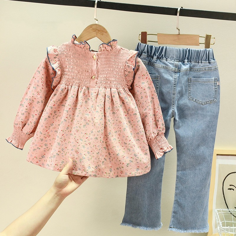 Setelan Anak Perempuan 1-7 Tahun Blouse Peach Bunga Celana Panjang Flare- BAP-8