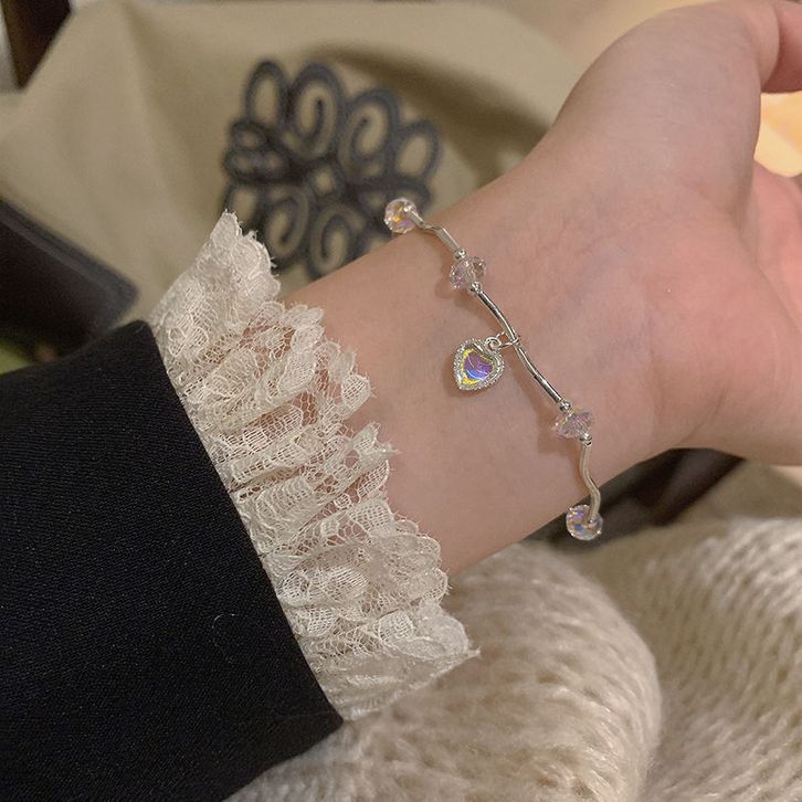 Perhiasan Wanita Gelang Cinta Kristal Warna-warni Geometris Manis Dan Sederhana Alloy Resin Love Hati Silver Aksesoris K