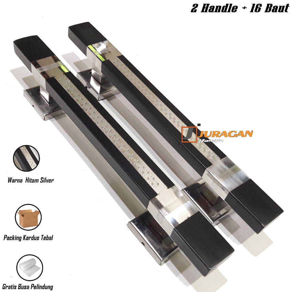 Gagang Pintu Rumah 2 Pintu 60 cm Handle Pintu Minimalis Mewah Hitam Grafir Stainless