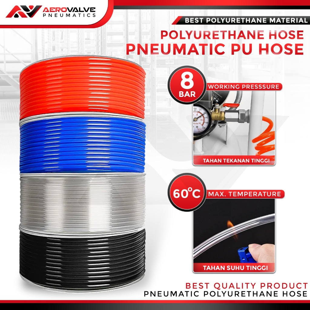 Aerovalve SATU ROLL !!! Hose Pu Selang Pu (PollyUrethane) 100 & 200 Meter