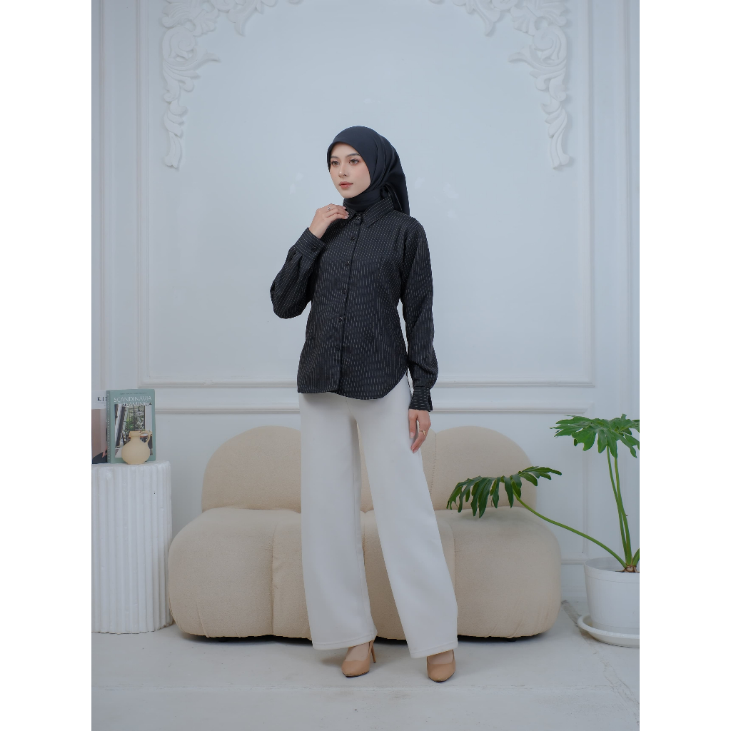Ghalibia.id - Luna Stripe Fitted Shirt | Atasan Wanita | Kemeja Wanita | Jumbo Big Size