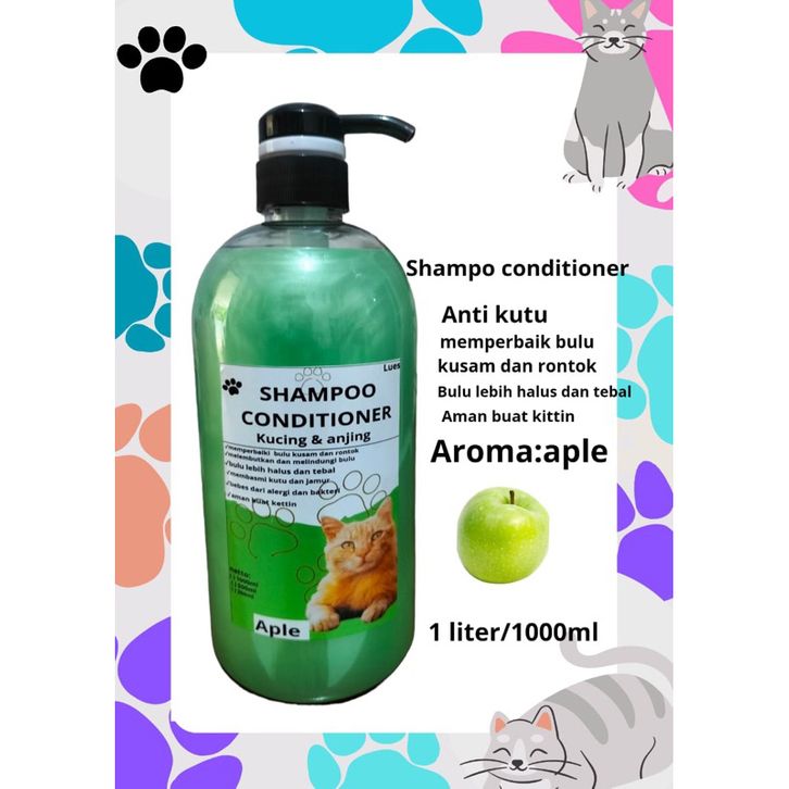 shampoo kondisioner kucing ,anti kusam,membuat bulu lebih tebal dan halus,membasmi kutu 1 liter pum ooo