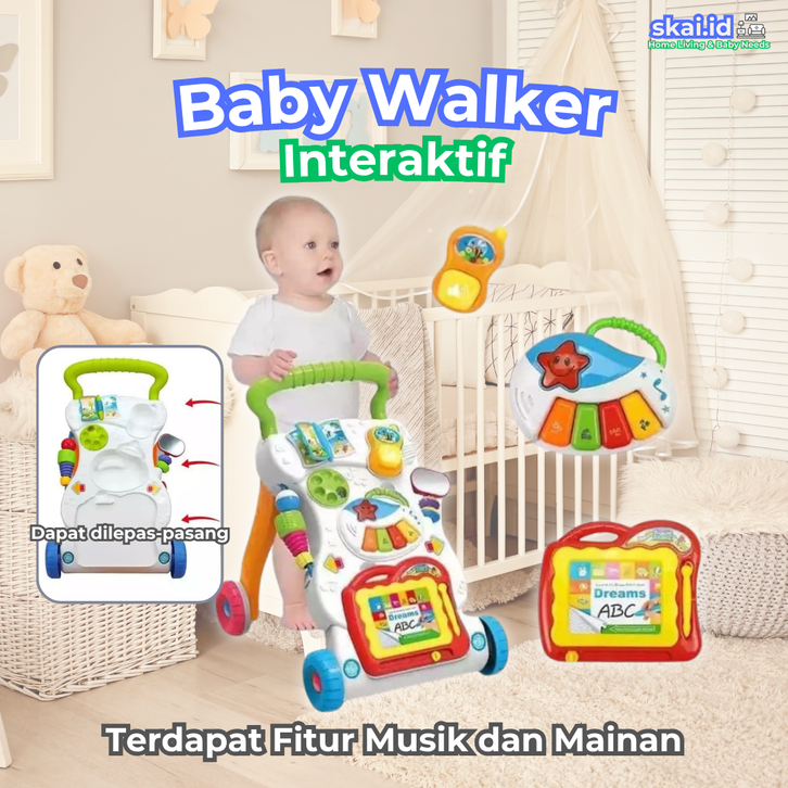 Mainan Anak Bayi Music Walker Alat Bantu Belajar Berjalan Push Walker Interaktif Musik dan Mainan Portable Lucu