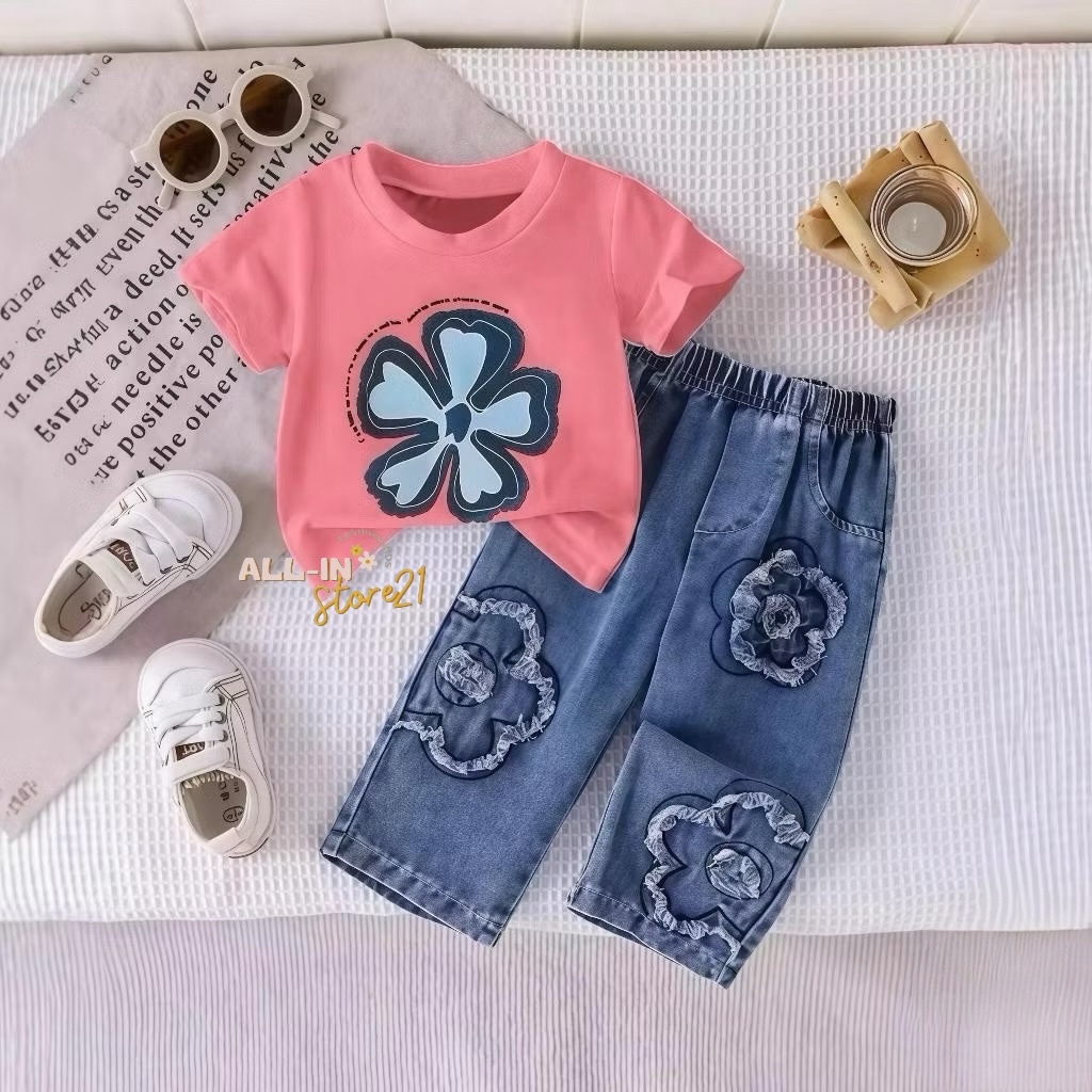 Setelan anak perempuan usia 1-5 tahun kaos motif bunga lucu dan celana full motif bunga model koreanstyle