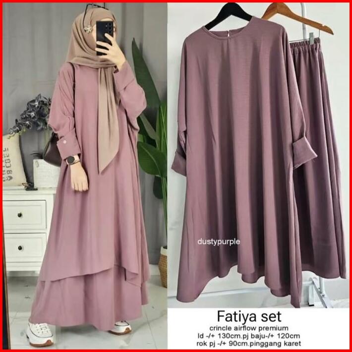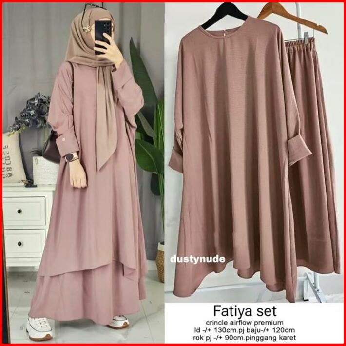 Fatiya Long Set Rok Oneset Tunik Cringkle Airflow Setelan Abaya Terbaru Muslimah Nyaman Baju