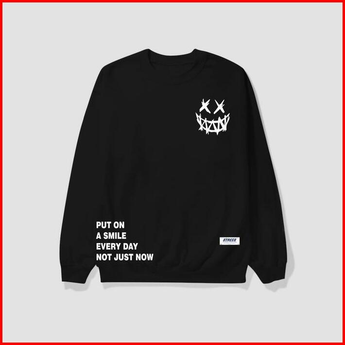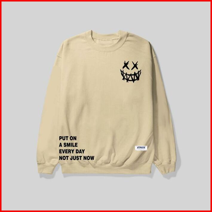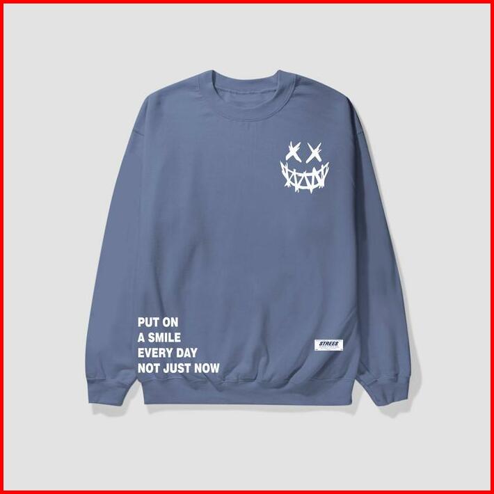 Strees Sweater Crewneck Smilestrees Pria Keren Berbahan Kain Flecee Lembut Size M-xxl Nyaman Distro Panjang Santai