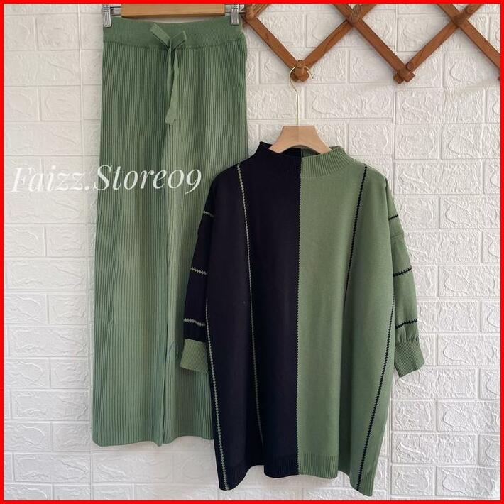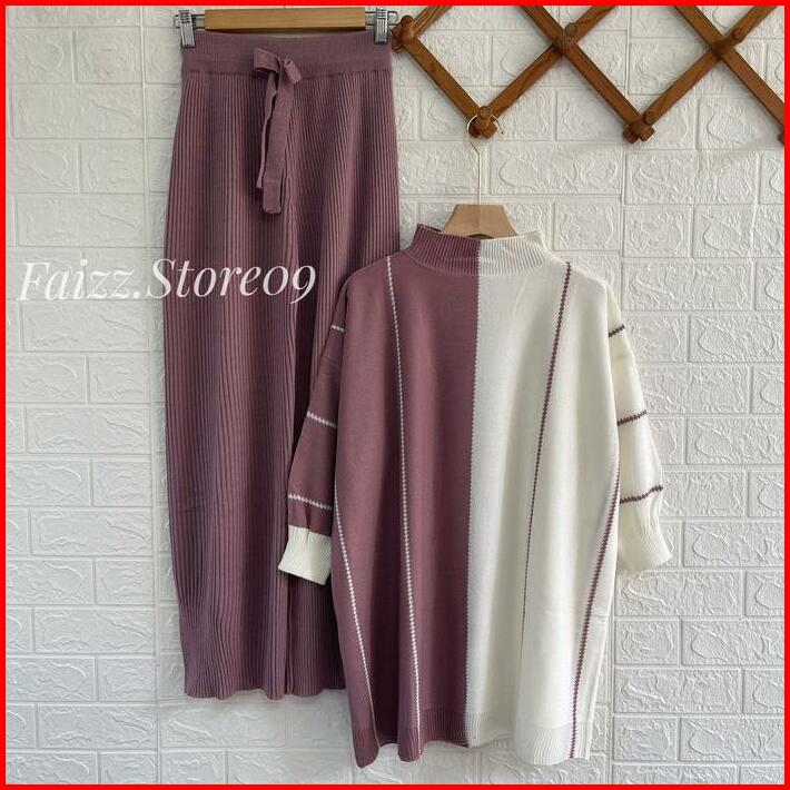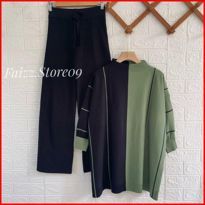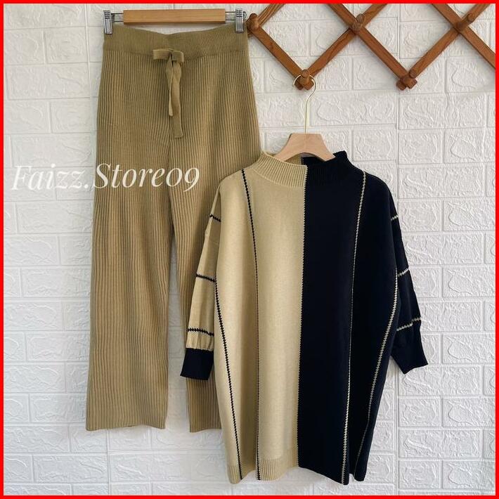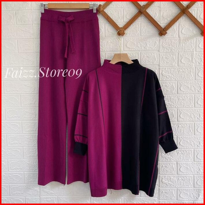 Oneset Laura Oversize Top Atasan Kalong Setelan Celana Kulot Rajut Wanita Oversized Panjang Tangan Bawahan Baju Dewasa S