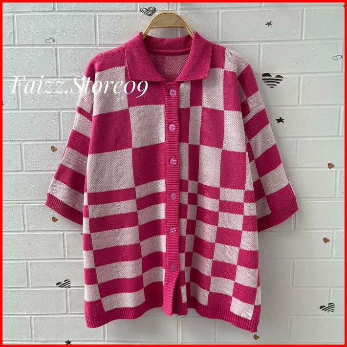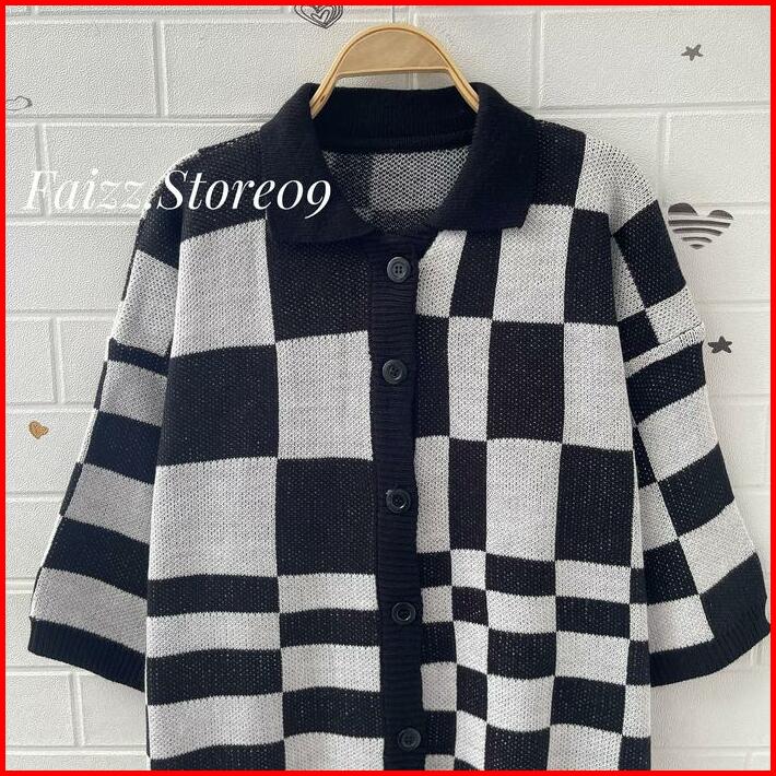 Knitwear Outfit Fuji Cardigan Rajut Motif Kotak Oversize Outer Atasan Panjang Wanita Kardigan Baju