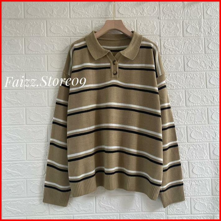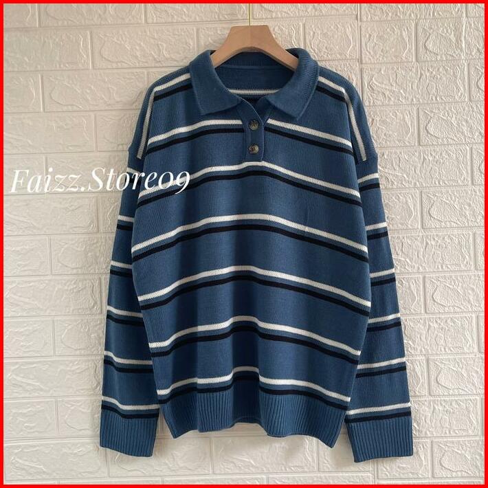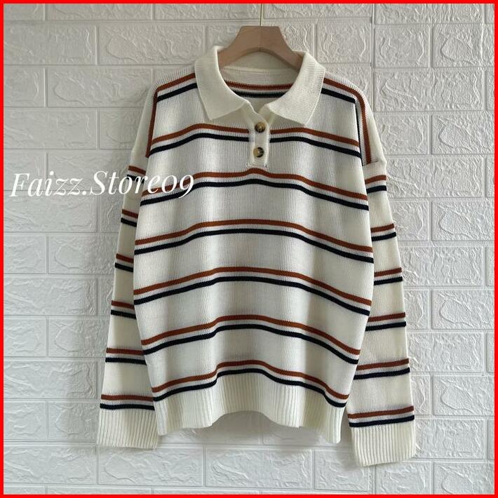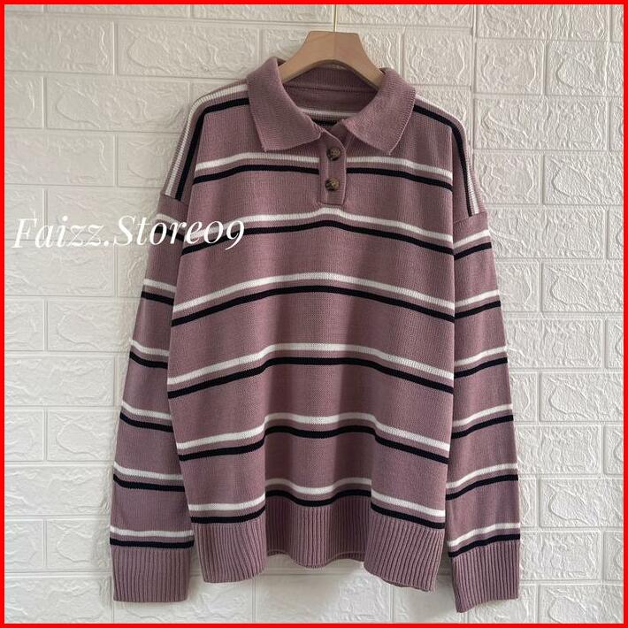 Milka Sweater Rajut Oversize Blaster Terbaru Motif Strippy Atasan Lengan Panjang Baju Stripe Knitwear Salur