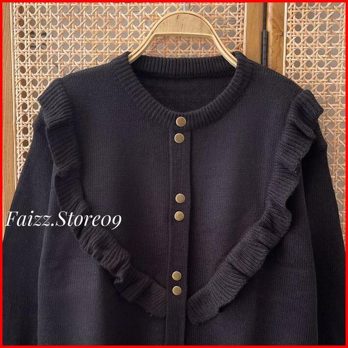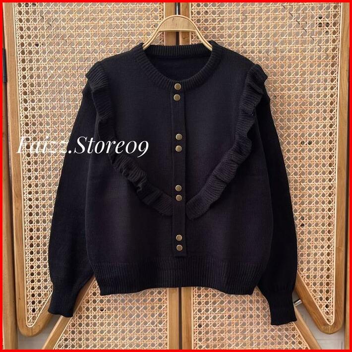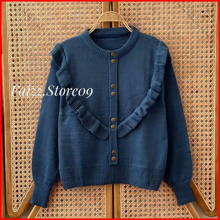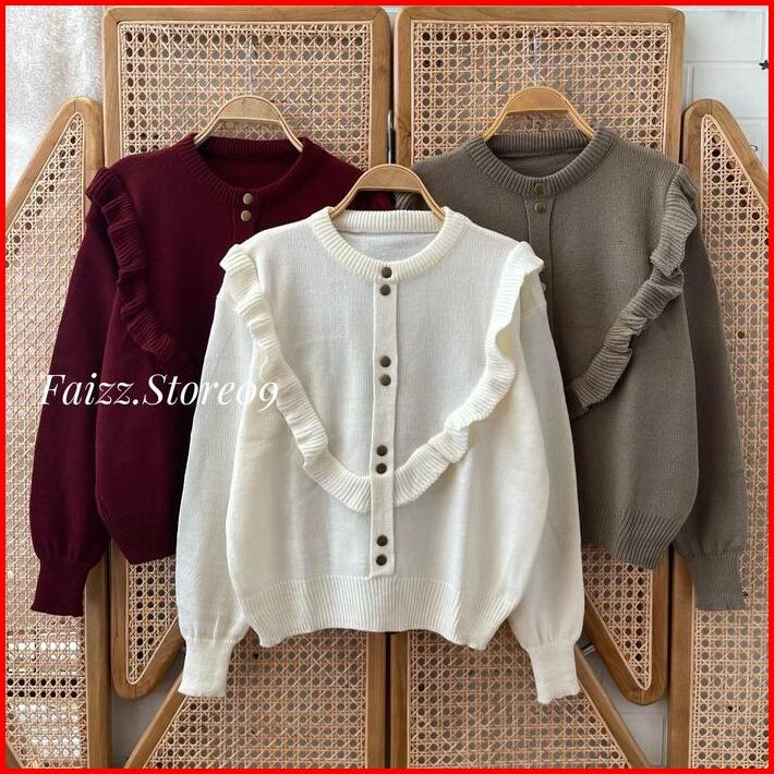 Rahayu Blous Rajut Wanita Motif Renda Kancing Lengan Panjang Wanita