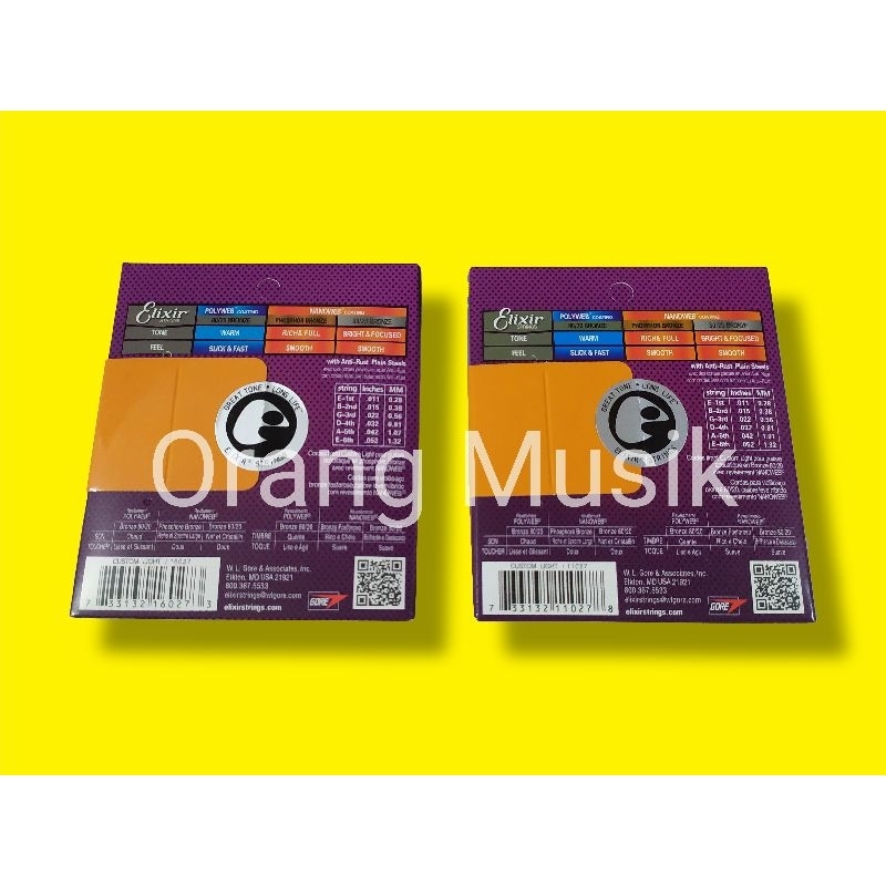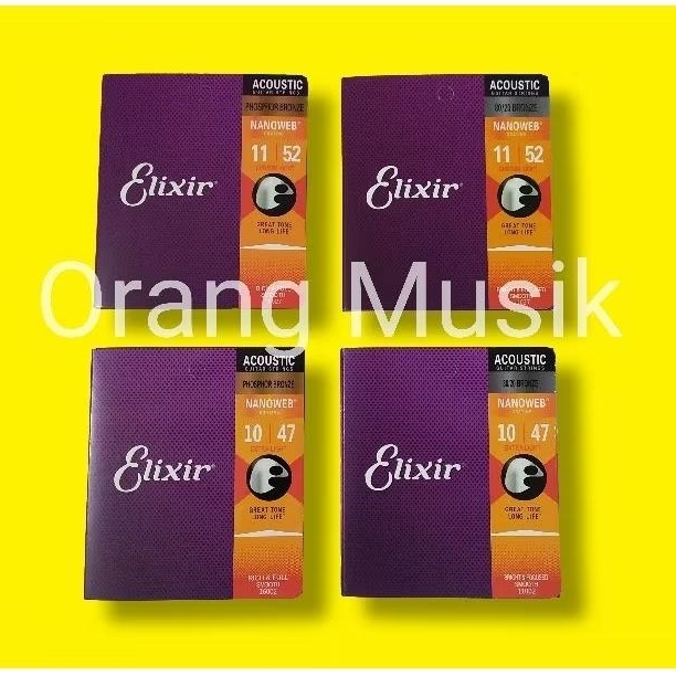 Senar Gitar Elixir Akustik Ukuran 010 011 012 Nanoweb Bronze and Phosphor Bronze