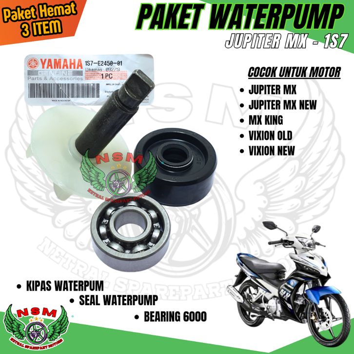 PAKET KOMPLIT 3ITEM SEAL WATERPUMP JUPITER MX + KIPAS + BEARING 6000 VIXION JUPITER MX NEW 135 VIKSON