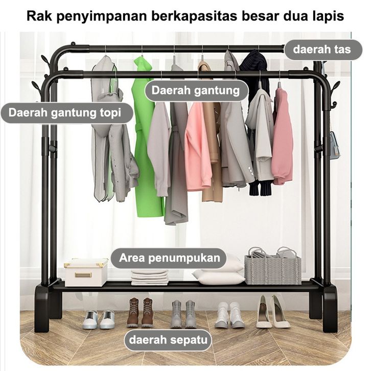 [Star] GANTUNGAN BAJU BESI BERDIRI STAND HANGER DSIPLAY BUTIK BAZAR HITAM/PUTIH GANTUNGAN BAJU ESTETIK