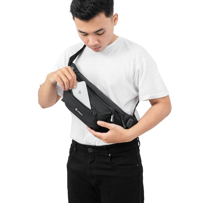 ATRAX - WAISTBAG WATERPROOF PRIA BAHAN SPON VU PREMIUM TAS PINGGANG SELEMPANG ANTI AIR TAS DADA SLING BAG BAHU PRIA