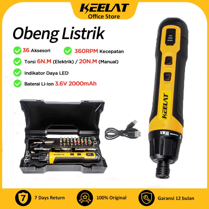 【KEELAT KES002】 Mesin Obeng Listrik 36PCS Set Mini Bor Cordless Screwdriver Mesin Bor Obeng Elektrik