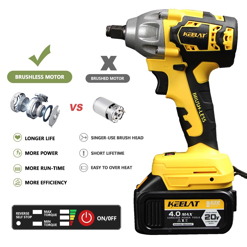 Mesin bor Impact baterai KEELAT KID005S 420N.M Brushless 13MM Cordless Impact wrench Impact impek baterai