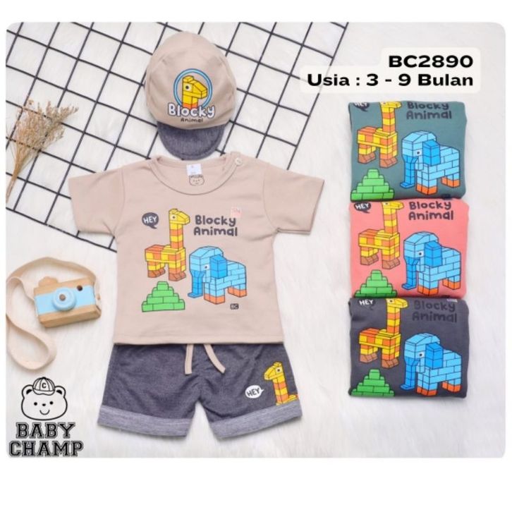 Setelan Baju Celana Pendek Bayi Laki-Laki Usia 3 - 9 Bulan