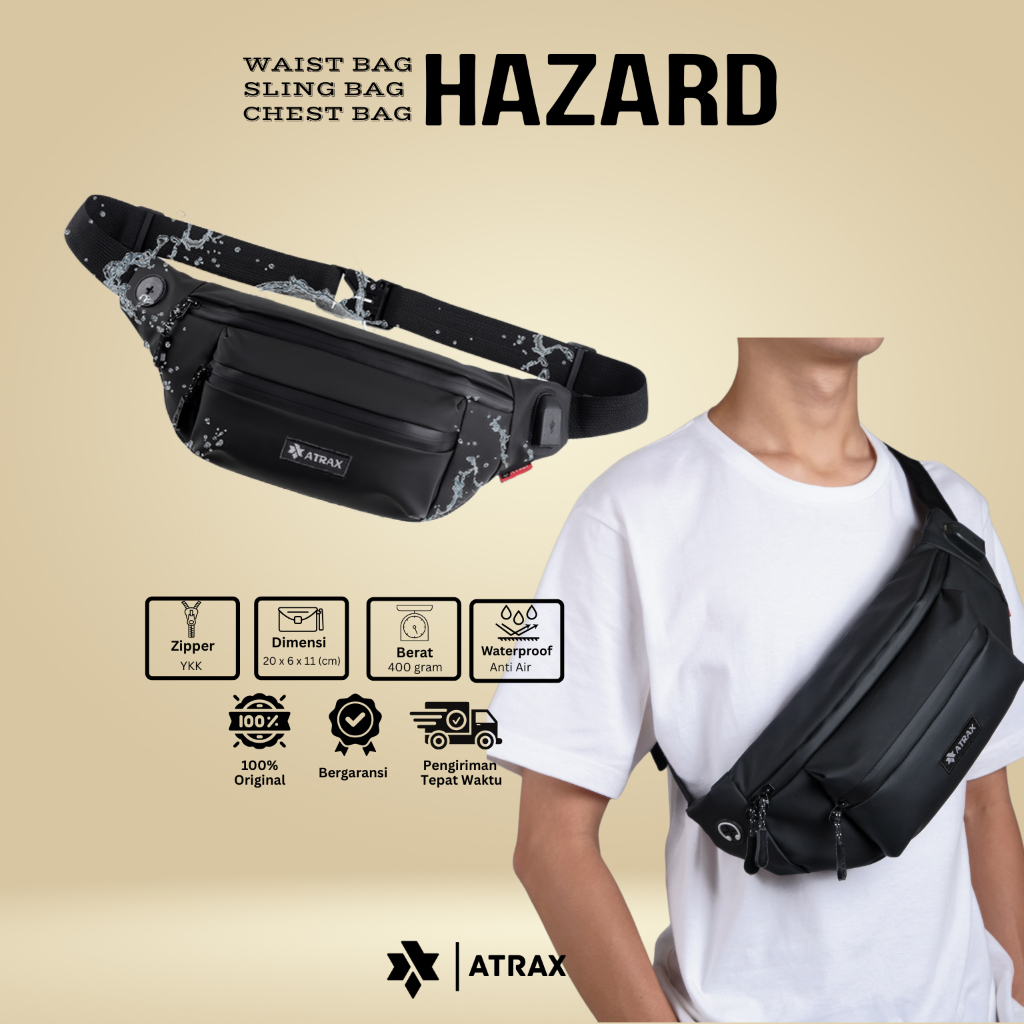 ATRAX - WAISTBAG WATERPROOF PRIA BAHAN SPON VU PREMIUM TAS PINGGANG SELEMPANG ANTI AIR TAS DADA SLING BAG BAHU PRIA
