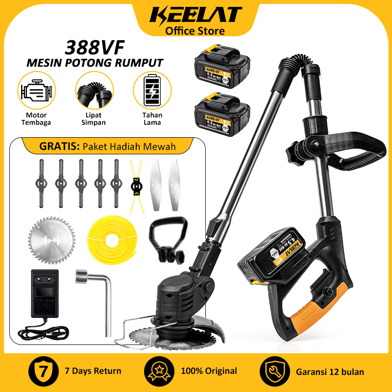 Mesin Potong Rumput Bateri KEELAT 388V/288V/188V/12V Cordless Pemotong Rumput Listrik Pemangkas Rumput dengan Baterai