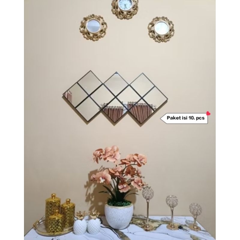 PAKET ISI 10 PCS KACA CERMIN DINDING TEMPEL KOTAK FRAMELES 20 X 20