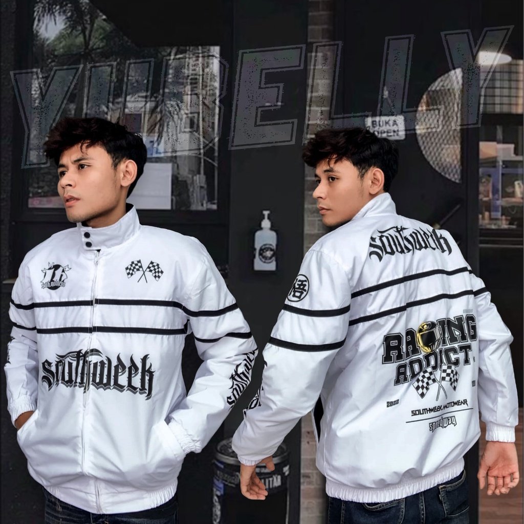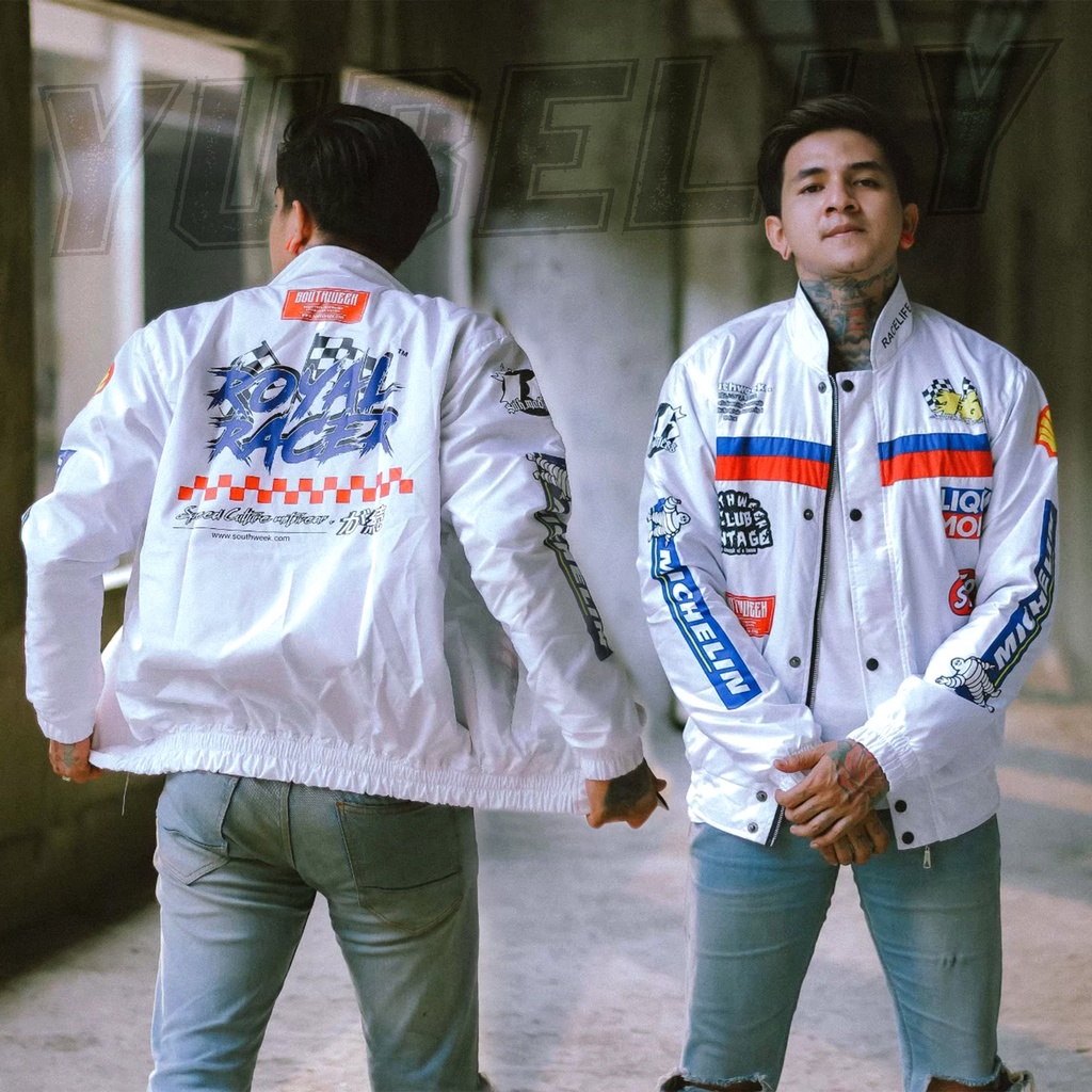 Jaket Nascar Racing Putih Pria Vintage | Jaket Motor Balap | Sunmori Jaket | Jaket Biker Touring | Jaket Bomber Racing |