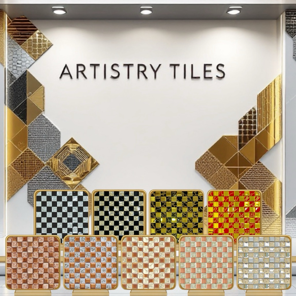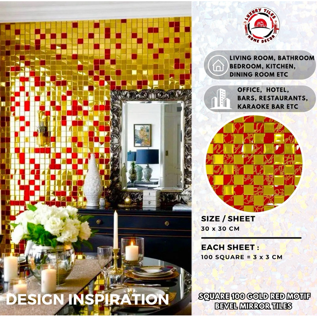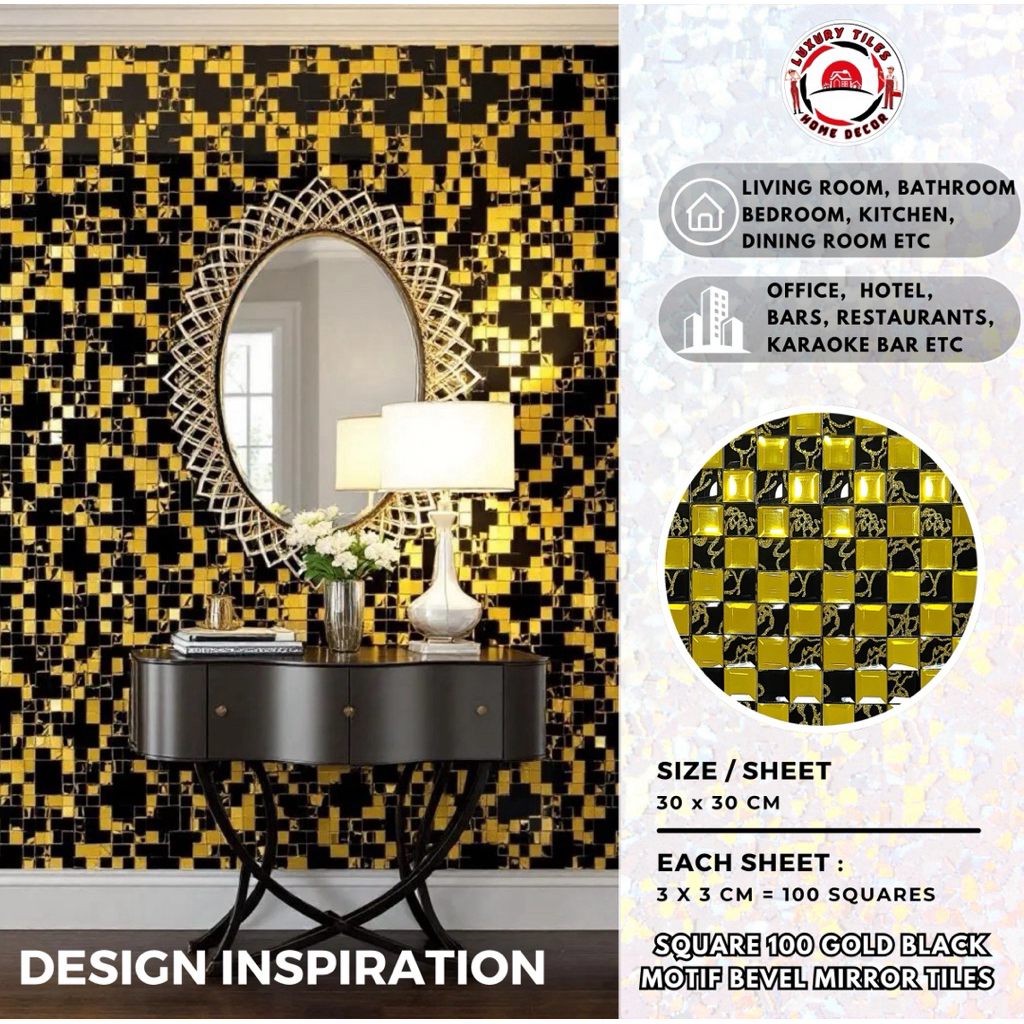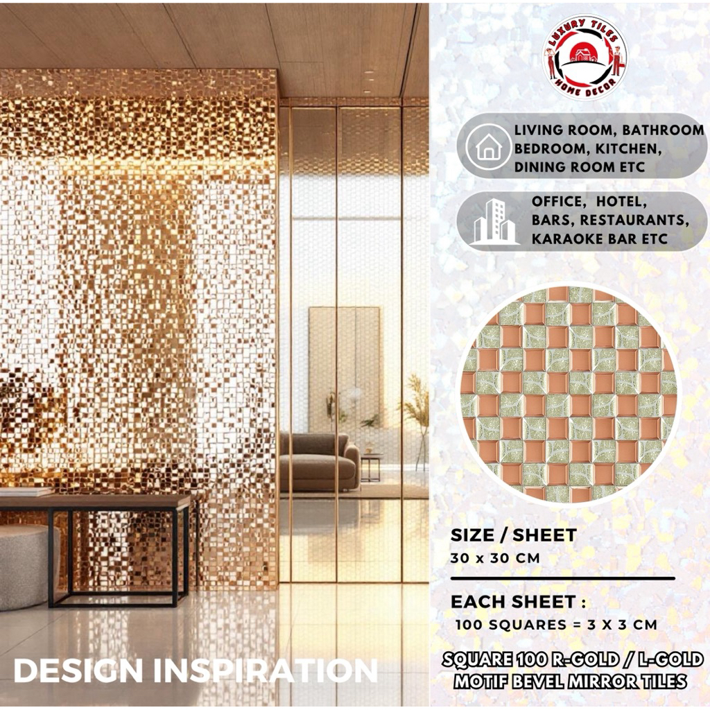 9 PILIHAN KERAMIK CERMIN DINDING 100 SQUARE ENGRAVED MOTIF MIRROR BEVEL TILES KACA DEKOR MEWAH WALL