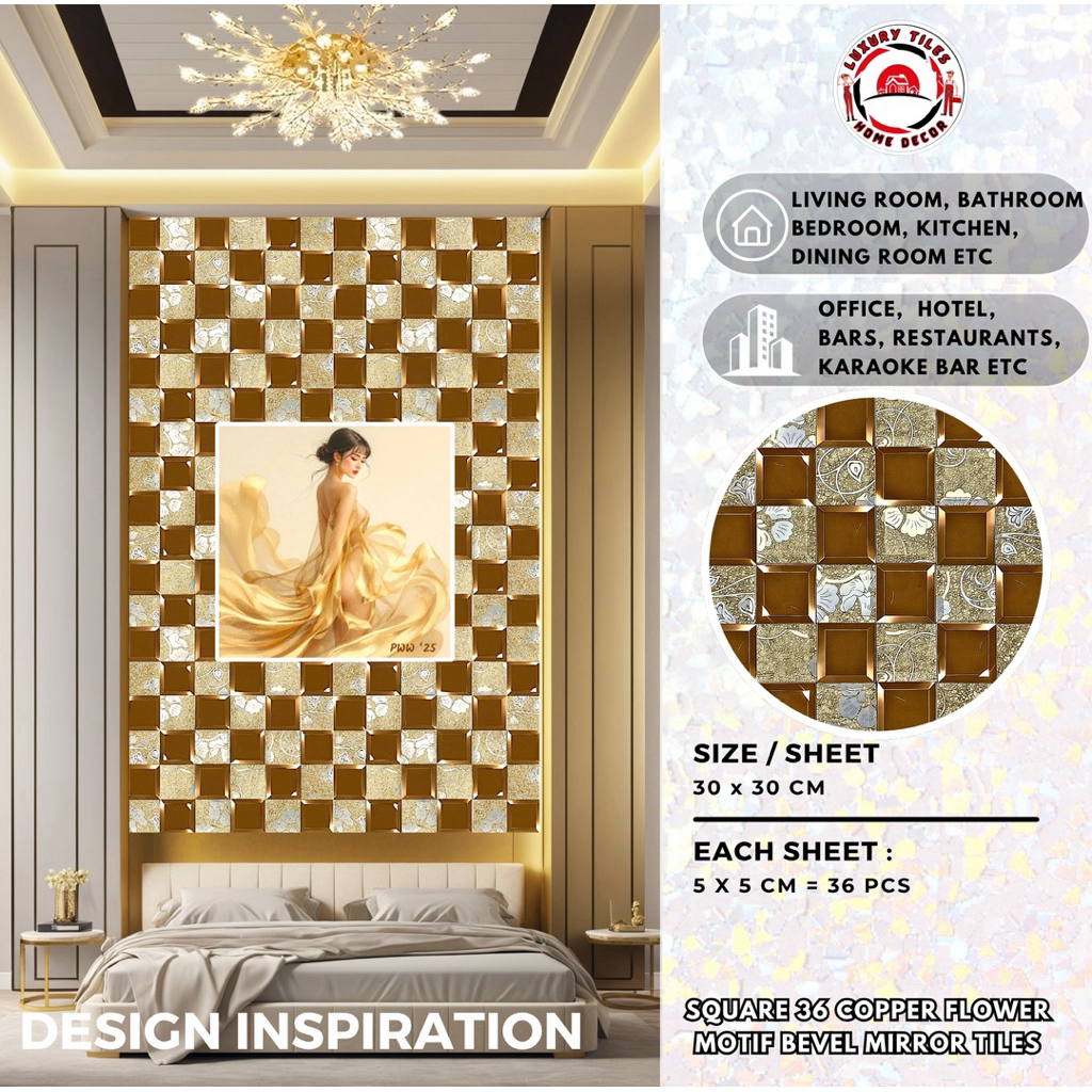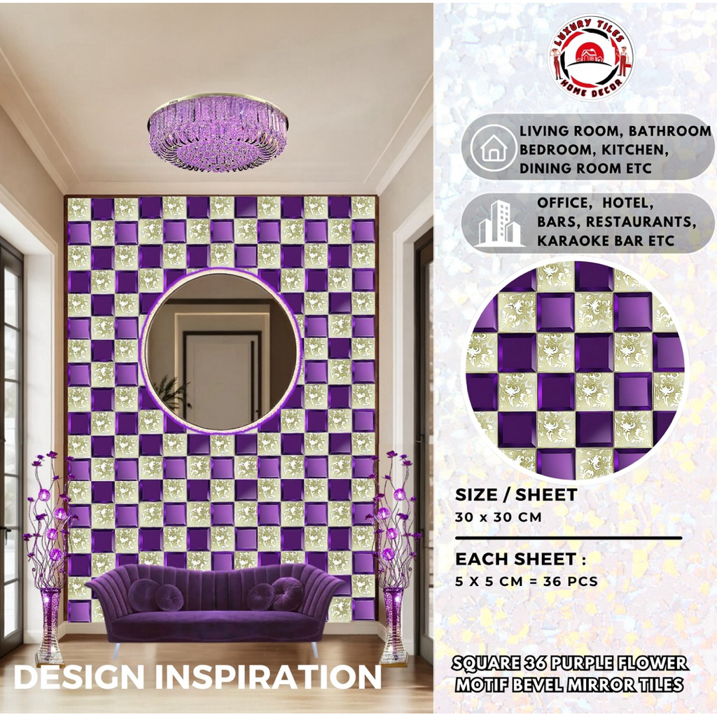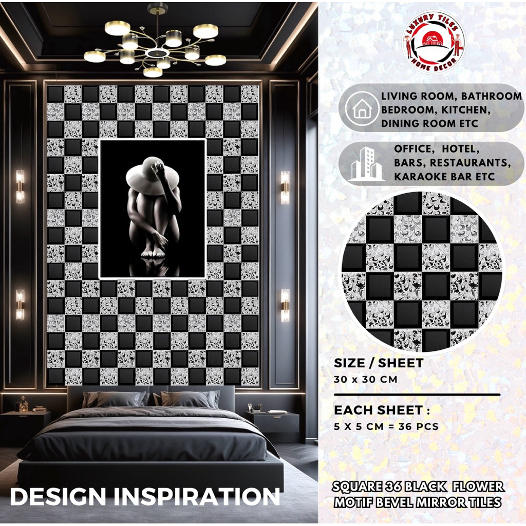 7 STYLE KERAMIK CERMIN DINDING 36 SQUARE MIX MOTIF MIRROR BEVEL TILES KACA DEKORASI MEWAH WALL 3D