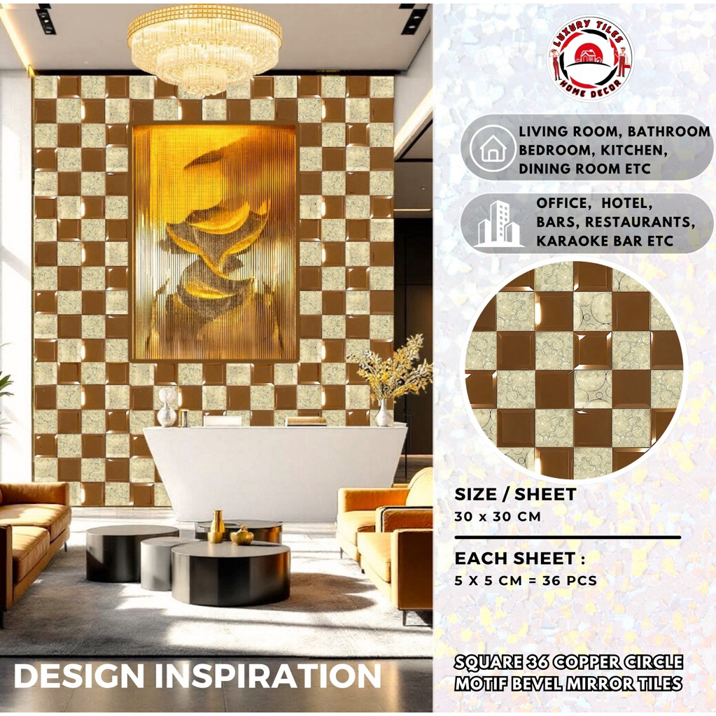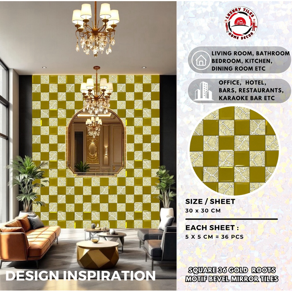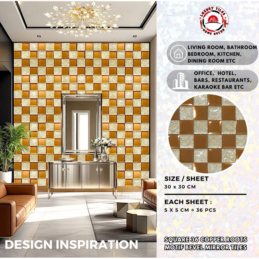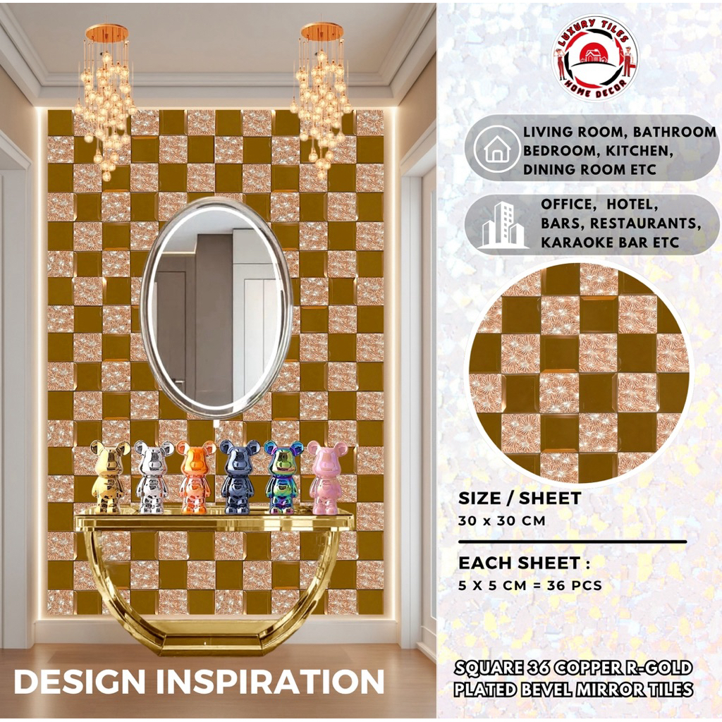 7 STYLE KERAMIK CERMIN DINDING 36 SQUARE MIX MOTIF MIRROR BEVEL TILES KACA DEKORASI MEWAH WALL 3D