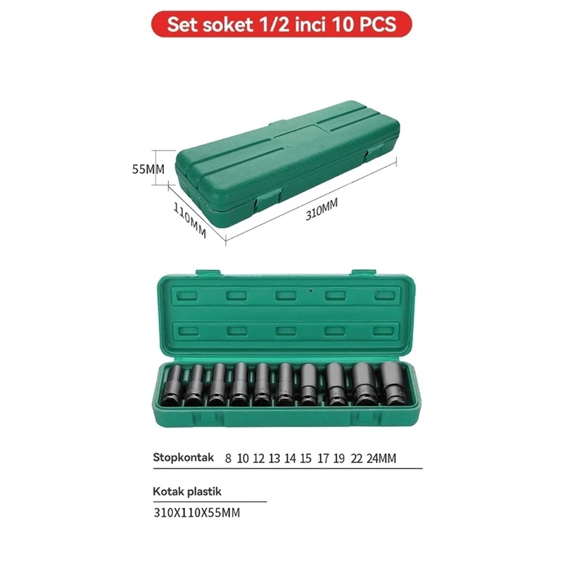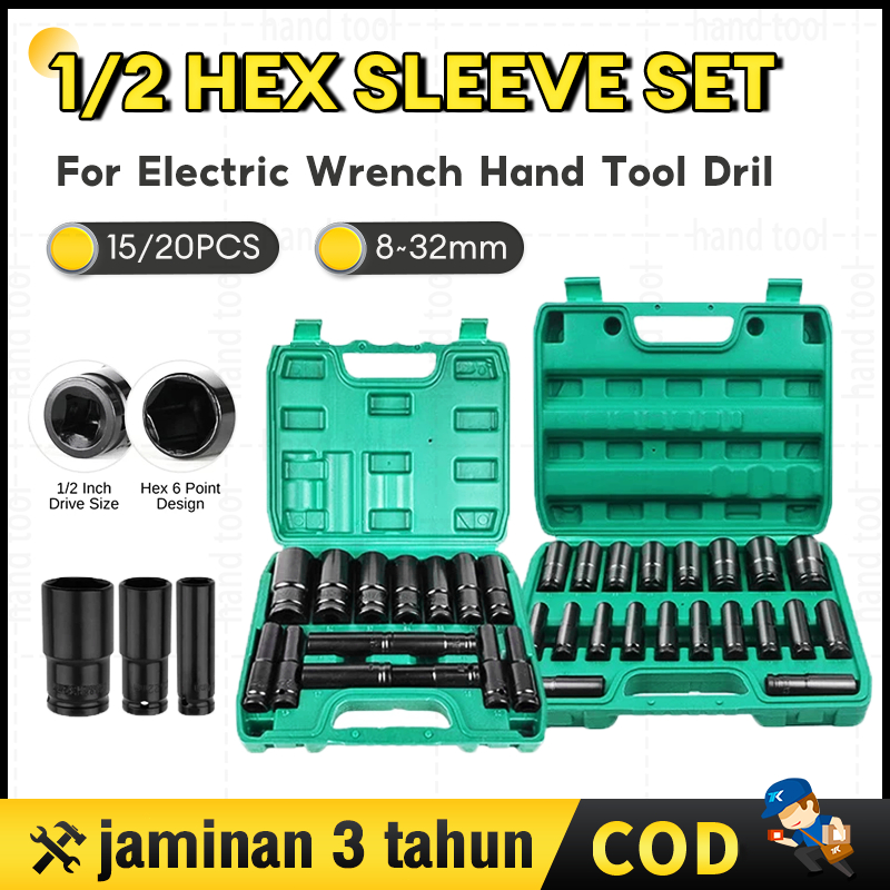 CICILAN TANPA DP Reaim Mata Socket Socket Extention Impact Socket 20 pcs 1/2 Inch 8-32MM Drive Impact Extension Deep Imp