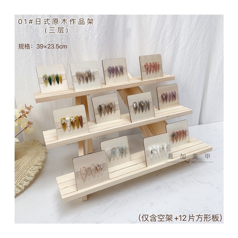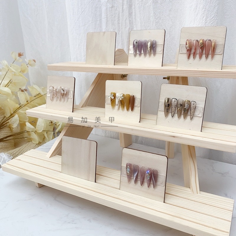 [NS103] Japanese style wooden nail display rak press on nails properti foto