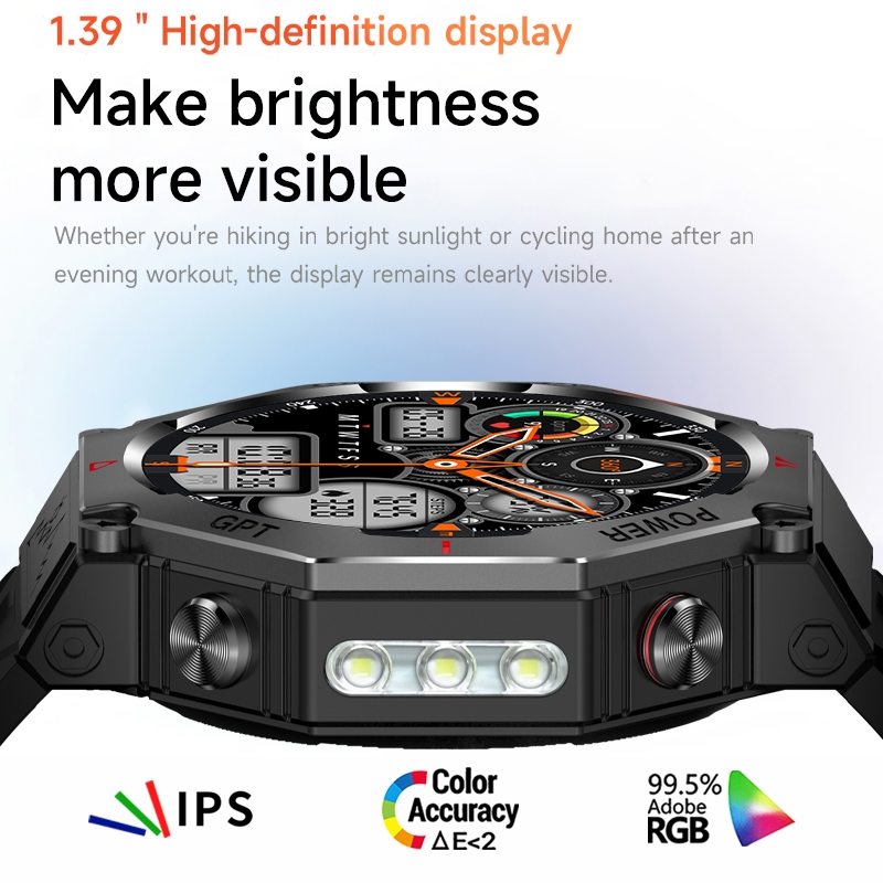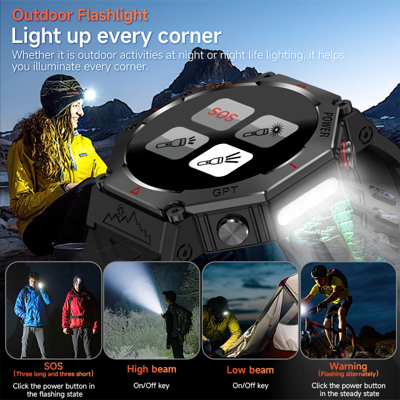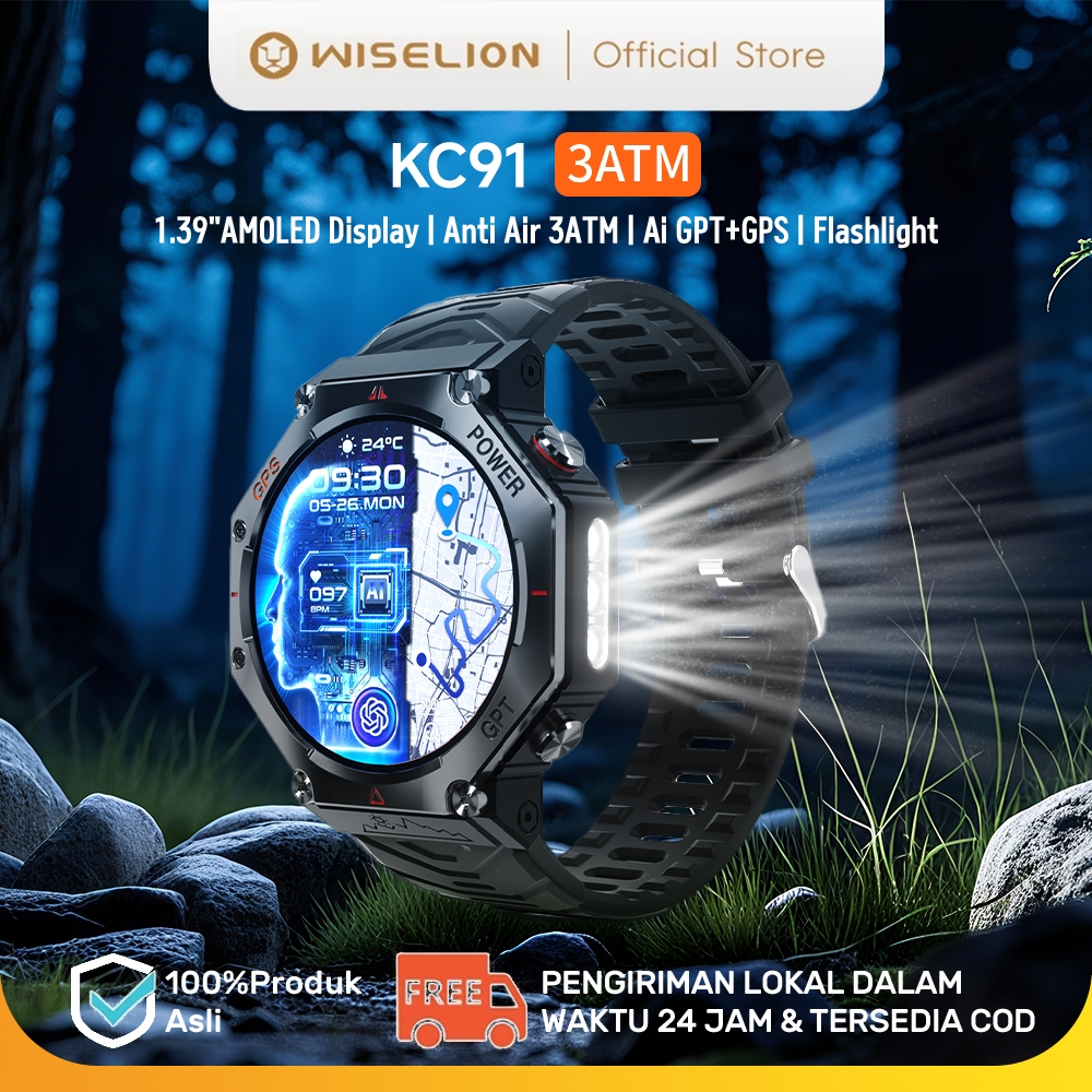 WISELION SMARTWATCH KC91 OUTDOOR GPS + FLASHLIGHT | AI GPT | 15 HARI BATERAI | 3ATM TAHAN AIR | JAM TANGAN SPORT PRIA
