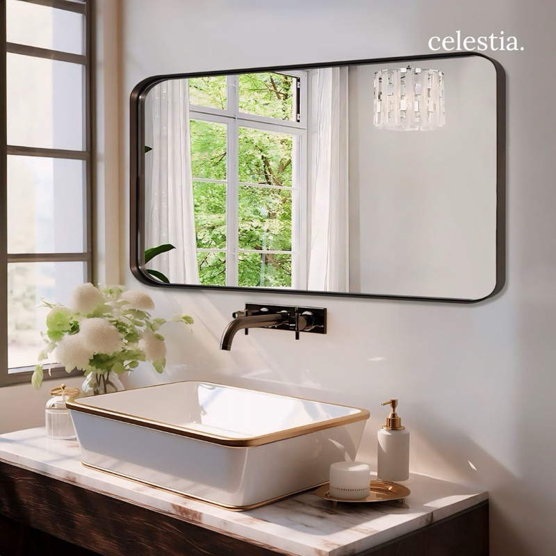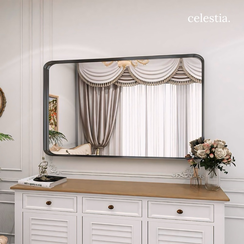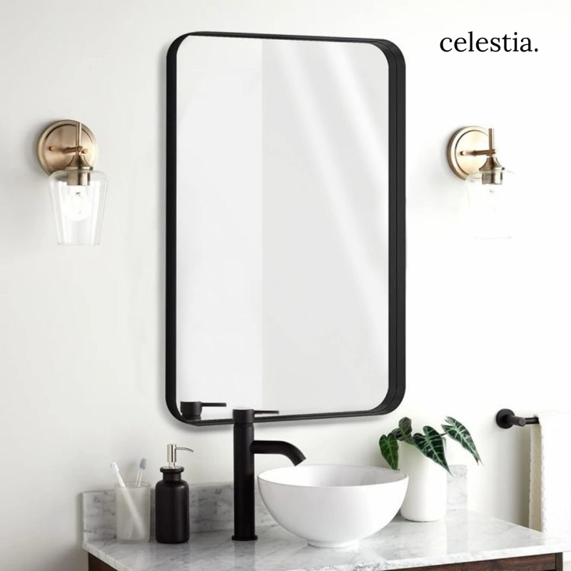 CERMIN AESTHETIC KOTAK PERSEGI RADIUS FRAME HITAM PUTIH DEKORASI RUANGAN RIAS MAKEUP WASTAFEL KAMAR MANDI FREE PACKING