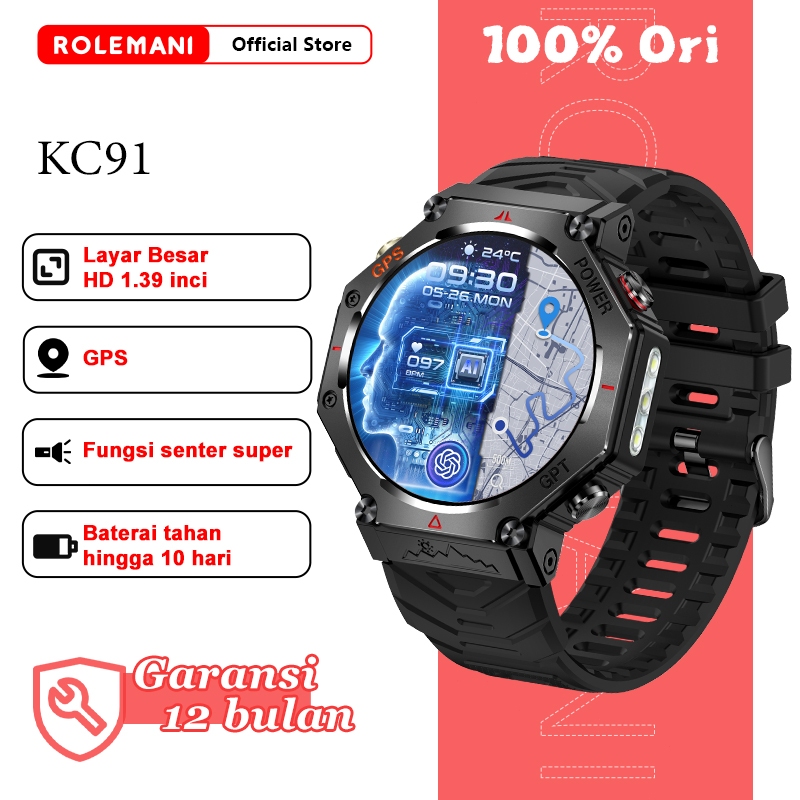 ROLEMANI KC91 SMARTWATCH GPS 1.39'' DISPLAY AOD COVER LOCK COMPASS BLUETOOTH CALL 530MAH BATTERY SMART WATCH HEART RATE BLOOD OXYGEN SLEEP MONITORING WATERPROOF JAM TANGAN PRIA SMART WATCH