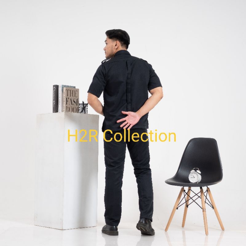 Seragam safari security baju safari setelan safari satpam lengan pendek hitam nevi coklat