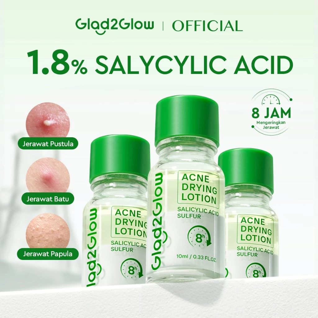 Glad 2 Glow Official Store | GLAD2GLOW Acne Drying Lotion Mengeringkan Jerawat 8 Jam Dengan Sulfur BHA & Bahan Alami