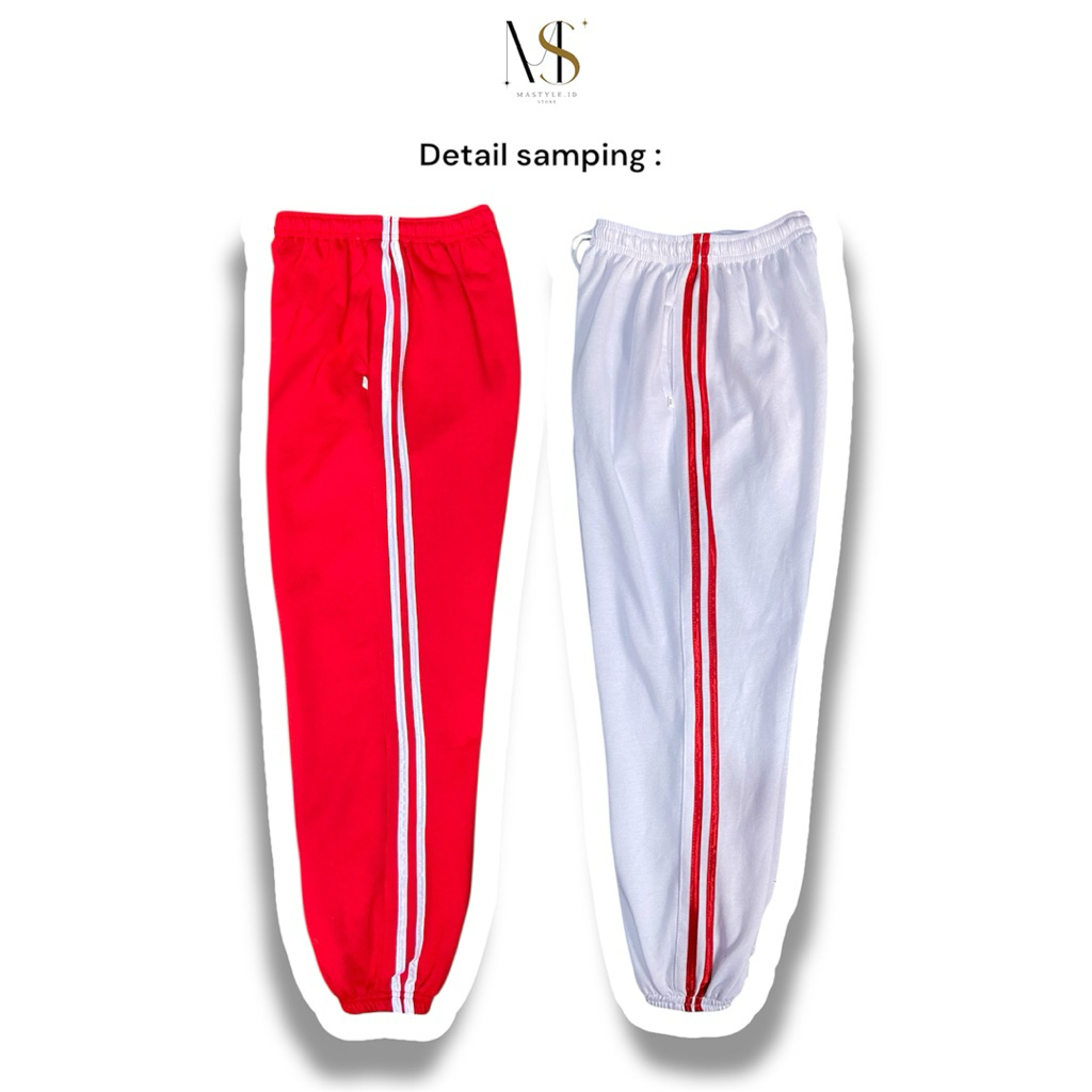 Mastyle Celana Jogger Merah Putih Lis Strip Dewasa Sweatpants Jogger Sport Edisi Kemerdekaan