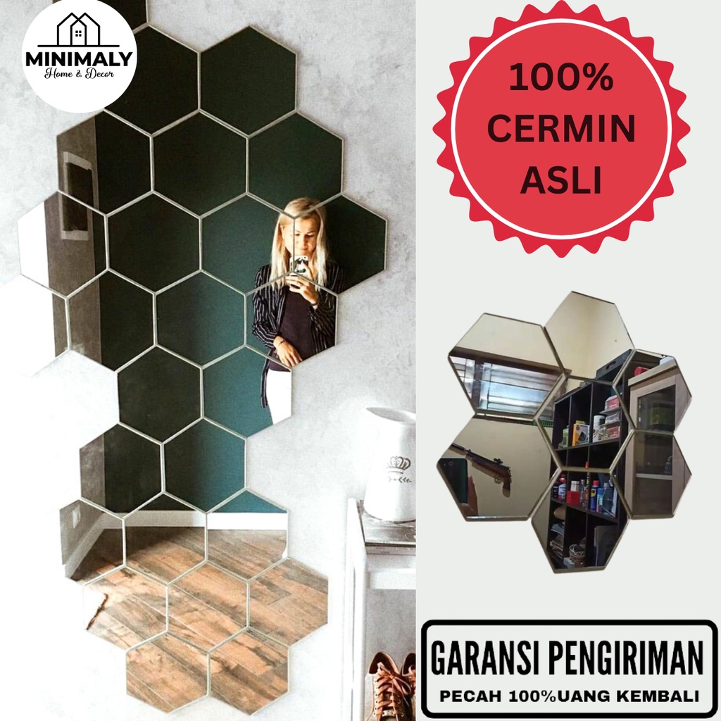 MINIMALY13 KACA CERMIN HEXAGONAL (PAKET HEMAT ISI 20 PCS) UKURAN 13X11 (CERMIN ASLI) CERMIN TEMPEL KACA HEXAGONAL HEXAGONAL MIROR HIASAN DINDING