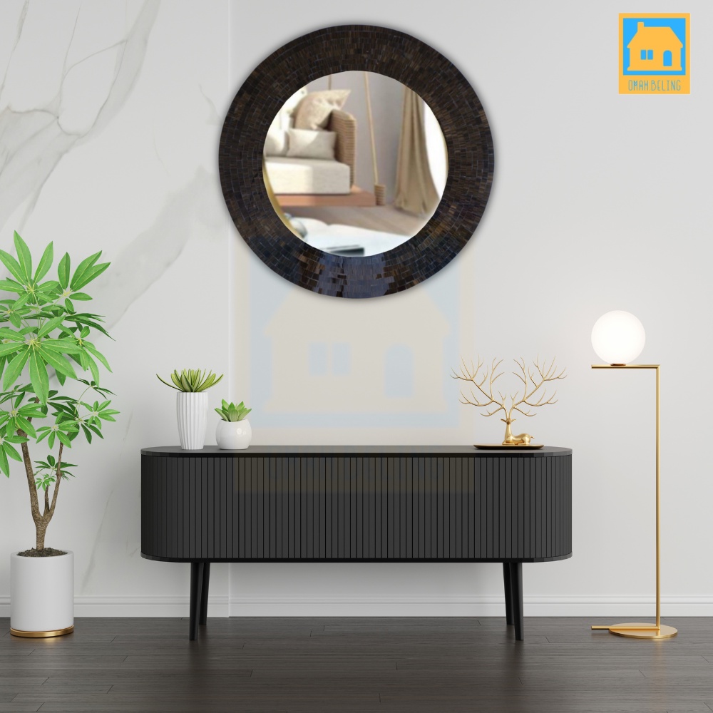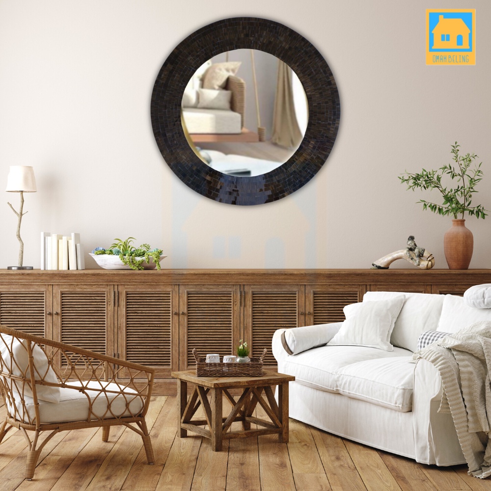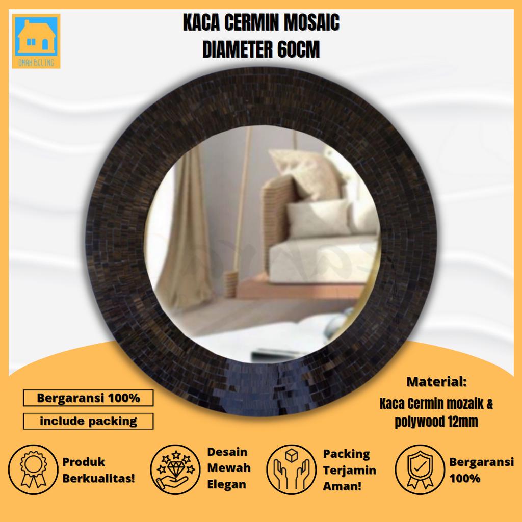 KACA CERMIN BULAT MOZAIK / DIAMETER 60CM / CERMIN KACA HIAS / HOMEDECOR CERMIN / DEKORASI CERMIN RUANGAN / OMC11