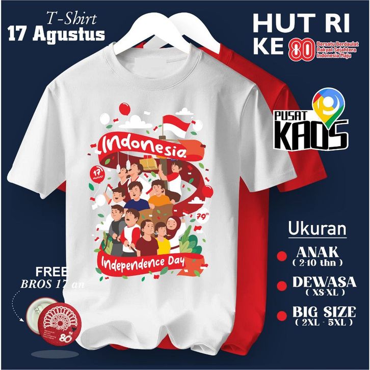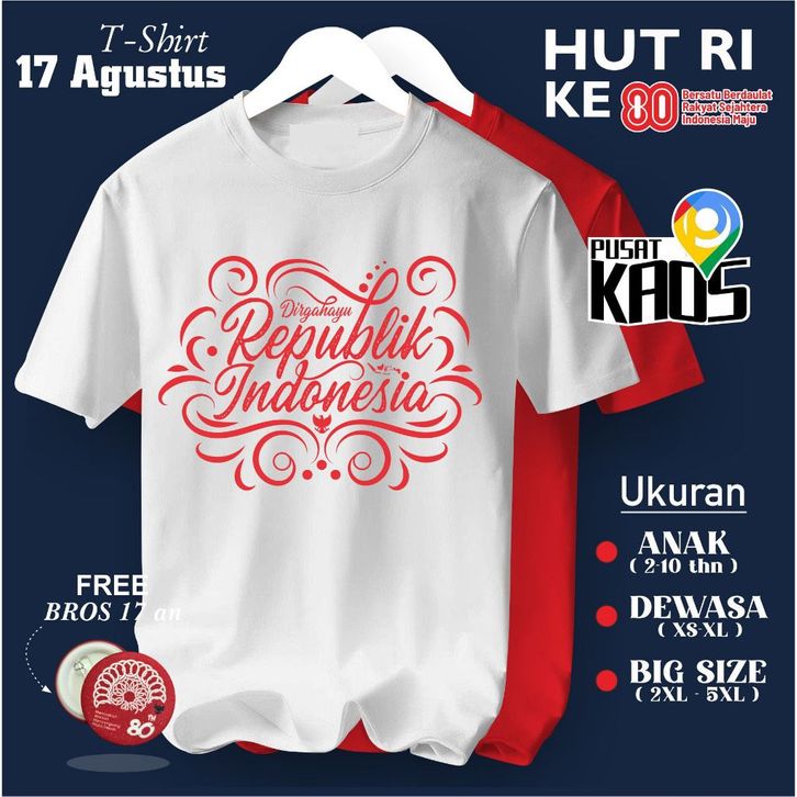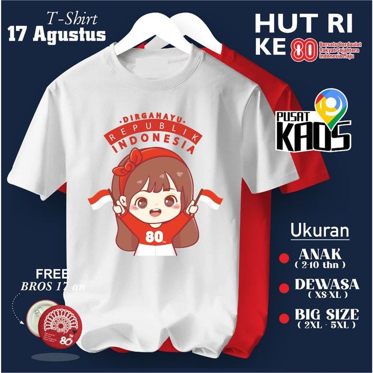 Kaos 17 Agustus Dewasa BAJU KAOS 17 AGUSTUS DIRGAHAYU INDONESIA HUT KE-80 KATUN COMBAD 30S PRIA DAN WANITA PREMIUM