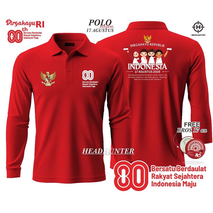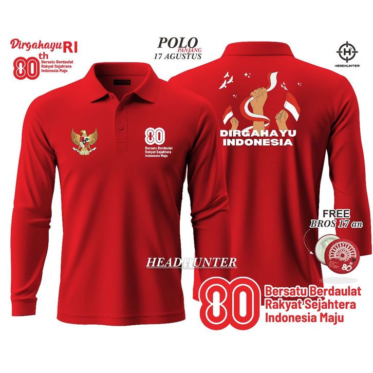 Kaos 17 Agustus Dewasa POLO PANITIA 17 AGUSTUS HUT RI KE-80 DIRGAHAYU REPUBLIK INDONESIA MERAH LENGAN PANJANG DEWASA BI