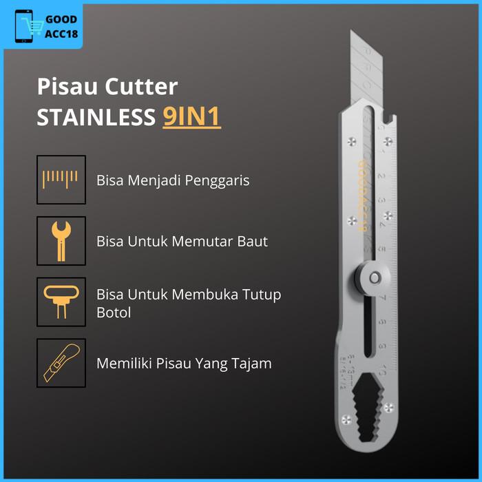 TERMURAH ORI ! (P!SAU) CUTTER STAINLESS 9IN1 MULTIFUNGSI TAHAN KARAT - CUTTER-9-IN-1