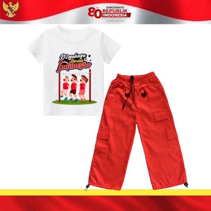 Baju Dirgahayu Anak Spesial Kemerdekaan RI Baju setelan anak Laki-laki Perempuan unisex Merah Putih Usia 1-12 Thn Baju