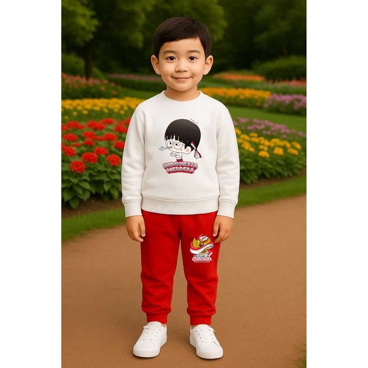 Baju Dirgahayu Anak Setelan Anak Lomba Kelereng Sweater dan Jogger HUT RI 80 Stelan 17 Agustus Seragam Merah Putih Dirg
