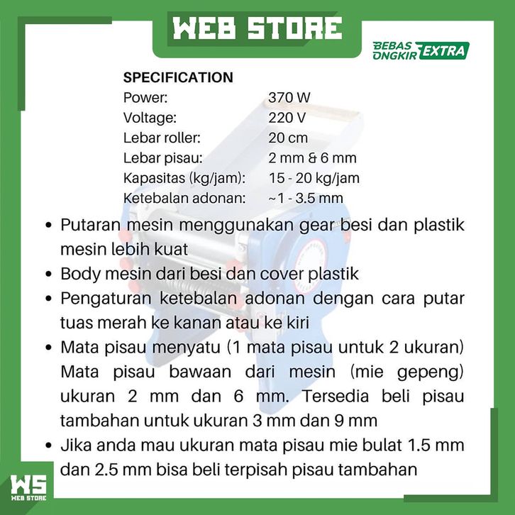 Mesin Giling Gilingan Mie Listrik Penggiling Mie Noodle Pasta Maker WILLMAN DZM-200